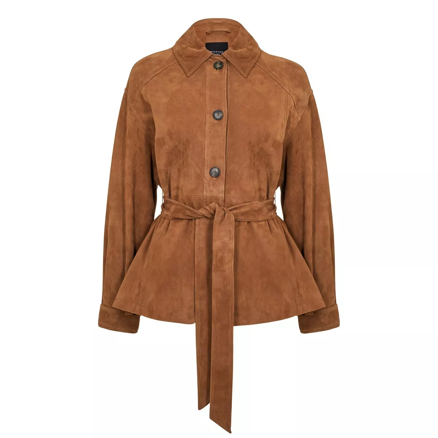 The Max Mara Weekend Polder Jacket is a great addition to your casual jacket collection, featuring a soft goat suede leather construction to the outer teamed with a button fastening and tie fastening to the waist. Two slip pockets provides ample space for your everyday essentials and the solid colouring with the Max Mara Weekend branding completes the look.