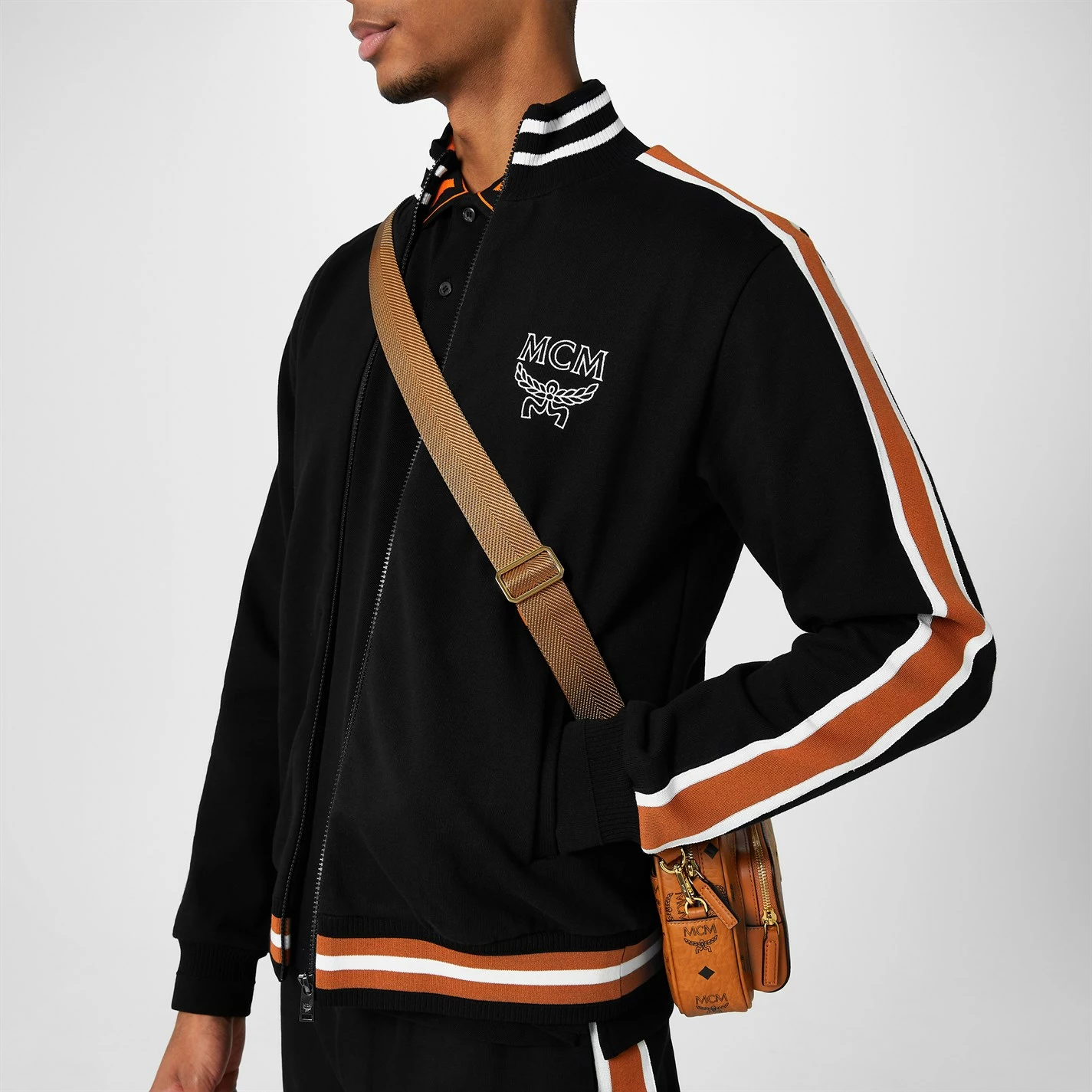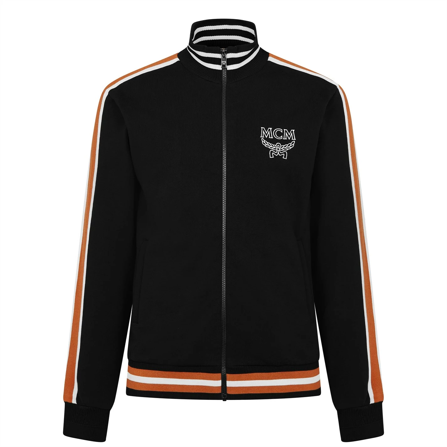 Enhance your collection with this Logo Track Jacket from mcm. Constructed from 100% cotton with central zip closure and long sleeves for an easy wear, it features comfortable ribbed trims and two hand pockets for a classic look. Decorated in a solid colouring throughout with stripe detailing and the iconic logo embroidered to the chest for instant brand appreciation.