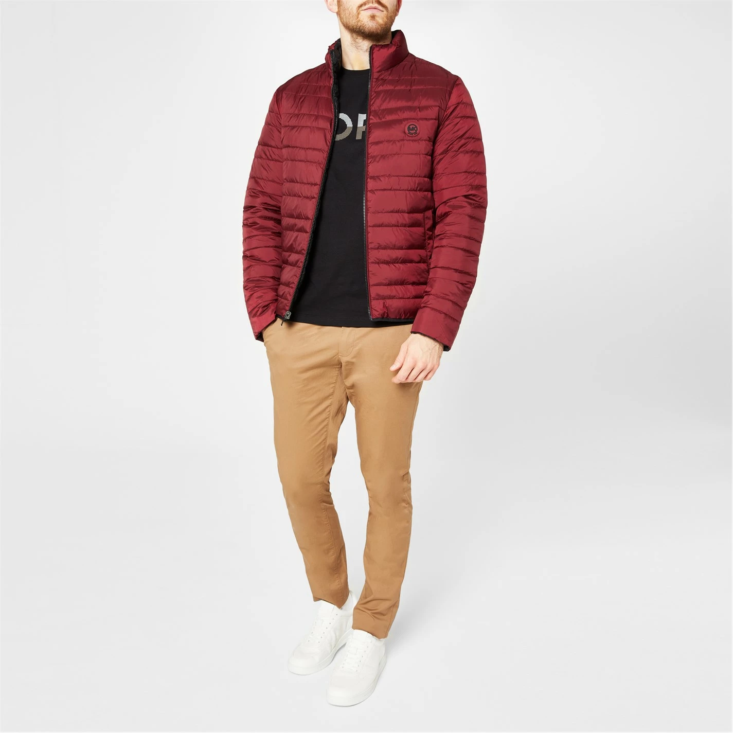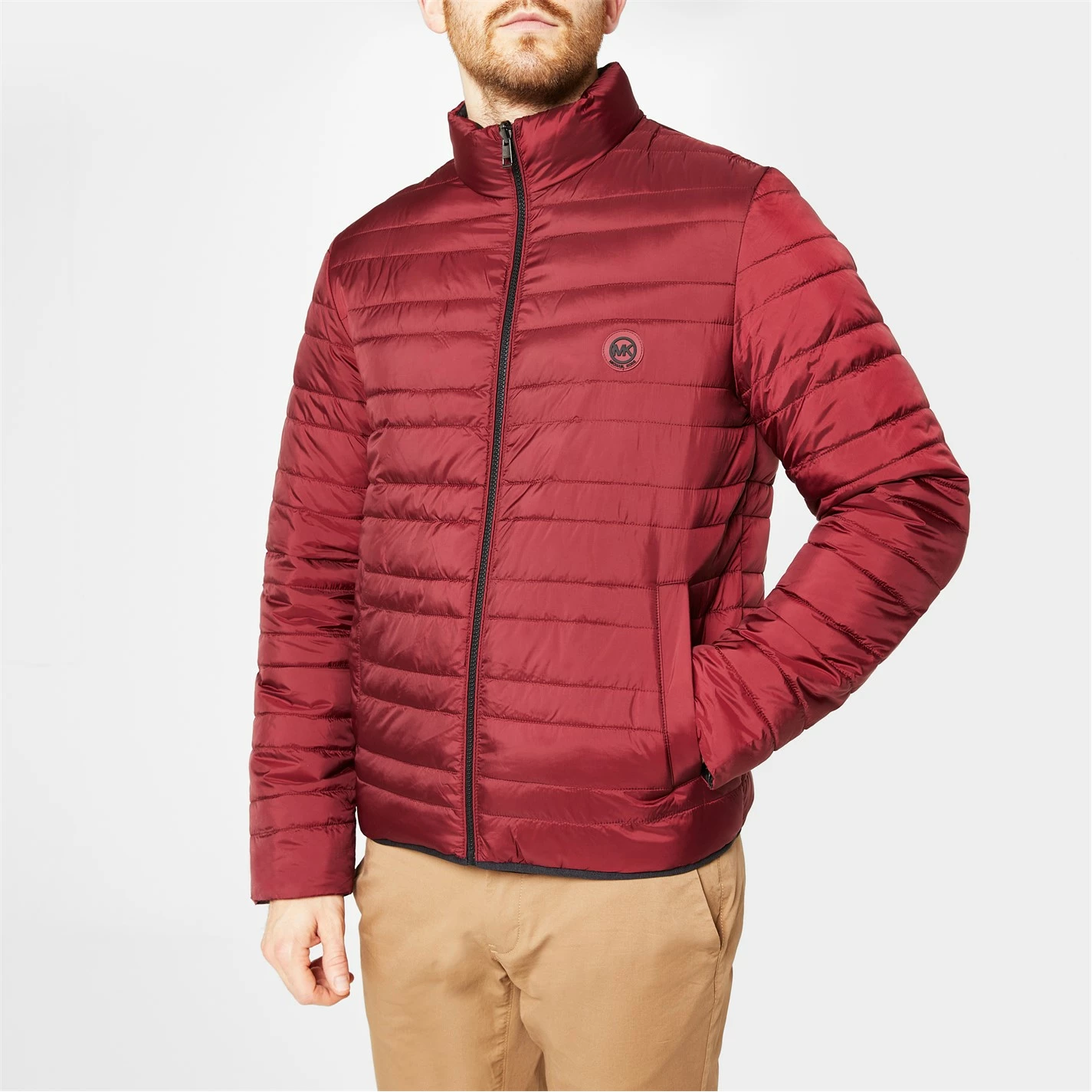 The Michael Kors Reversible Quilted Jacket is a great addition to your causal wardrobe to keep you warm for the cold winter months. A lightweight quilted reversible jacket which features the iconic MK logo design on the sleeve on one side and plain quilted on the other. This Jacket has a full zip fastening with a stand up collar, elasticated trims and cuffs, two press stud fastening pockets for one side and two zip pockets at the waist on the other side. Machine washable at 30 degrees.