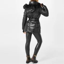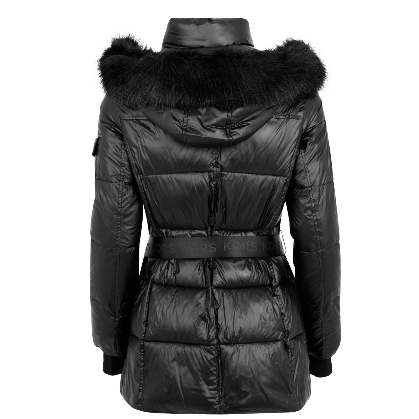 Elevate your outerwear with the Belted Quilted Puffer Jacket from Michael Kors. Crafted in a durable nylon composition, this jacket features a detachable hood with faux-fur lined trim, long sleeves, a central zip fastening, ribbed cuff, twin front pockets, an interior pocket and a adjustable and detachable belt. Decorated in a solid colour throughout, the design is elevated with the Michael Kors branding to the belt. Shell / Exterior / Lining: 100% nylon. Knit: 62% viscose, 33% nylon, 5% elastane. Faux Fur Face: 100% modacrylic. Faux Fur Back: 100% polyester. Body Fill / Hood Fill: 100% recycled polyester. Machine washable at 30 degrees.