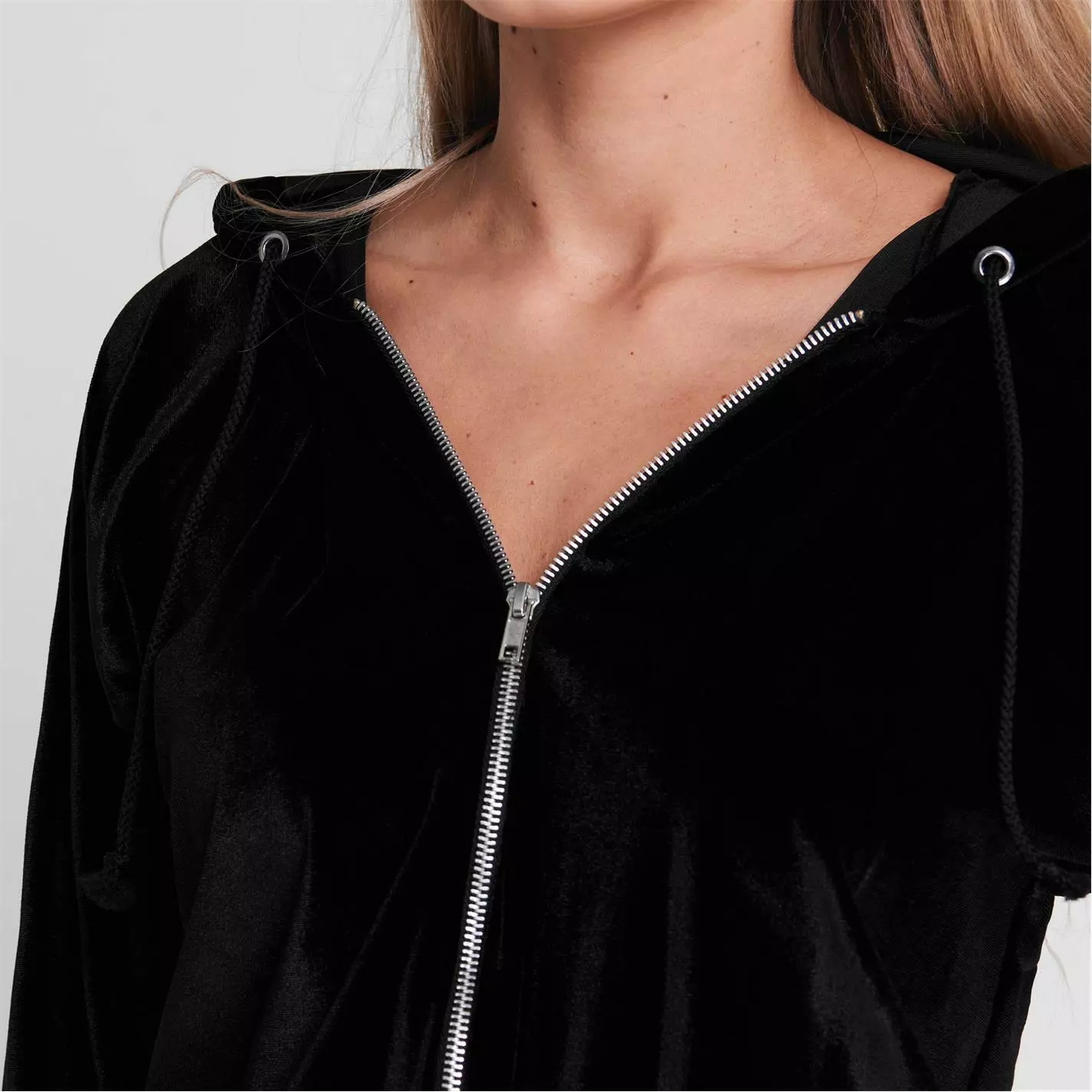 Enhance your off-duty look with this Velour Jacket from Miso which has been crafted with a super soft and smooth velour fabric which also delivers a shining sheen. The jacket has a full zip fastening which is assisted by the stretchy fabric to provide you with a snug fit and the drawcord hood allows you to adjust the coverage.