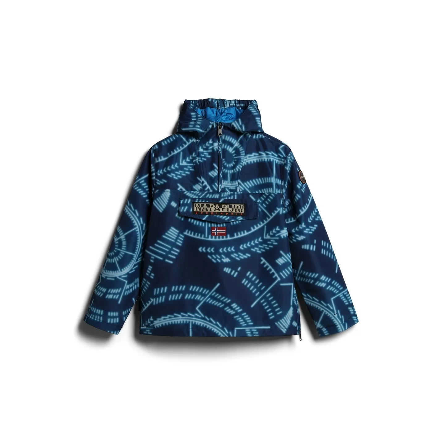 Update your little one’s collection with this stylish and practical Boys AOP Rainforest Jacket from Napapijri. Crafted in a soft polyester material, this jacket is cut in a regular fit and features half zip fastening, a fixed elasticated hood, long sleeves, zip closure to the side and a spacious front flap zipped pocket. Decorated in a bold branded print throughout, the look is finished with the brand’s signature badge sewn to the front for a statement aesthetic and modern vibrant style. Machine washable at 30 degrees.