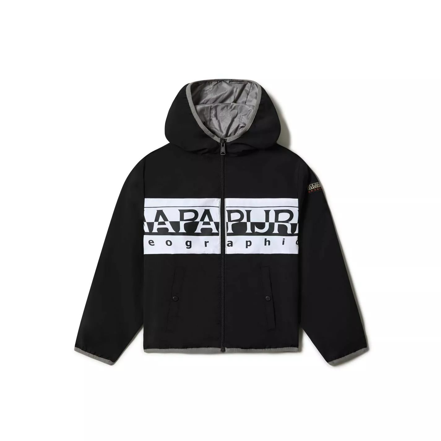 Upgrade your little one’s outerwear collection with the Napapijri Entremont Jacket. Crafted from a lightweight nylon blend, this practical piece comes with a fixed hood, elasticated trims and a central zip fastening. With the side pockets adding to the functionality, the large printed branding across the front completes the high quality design.