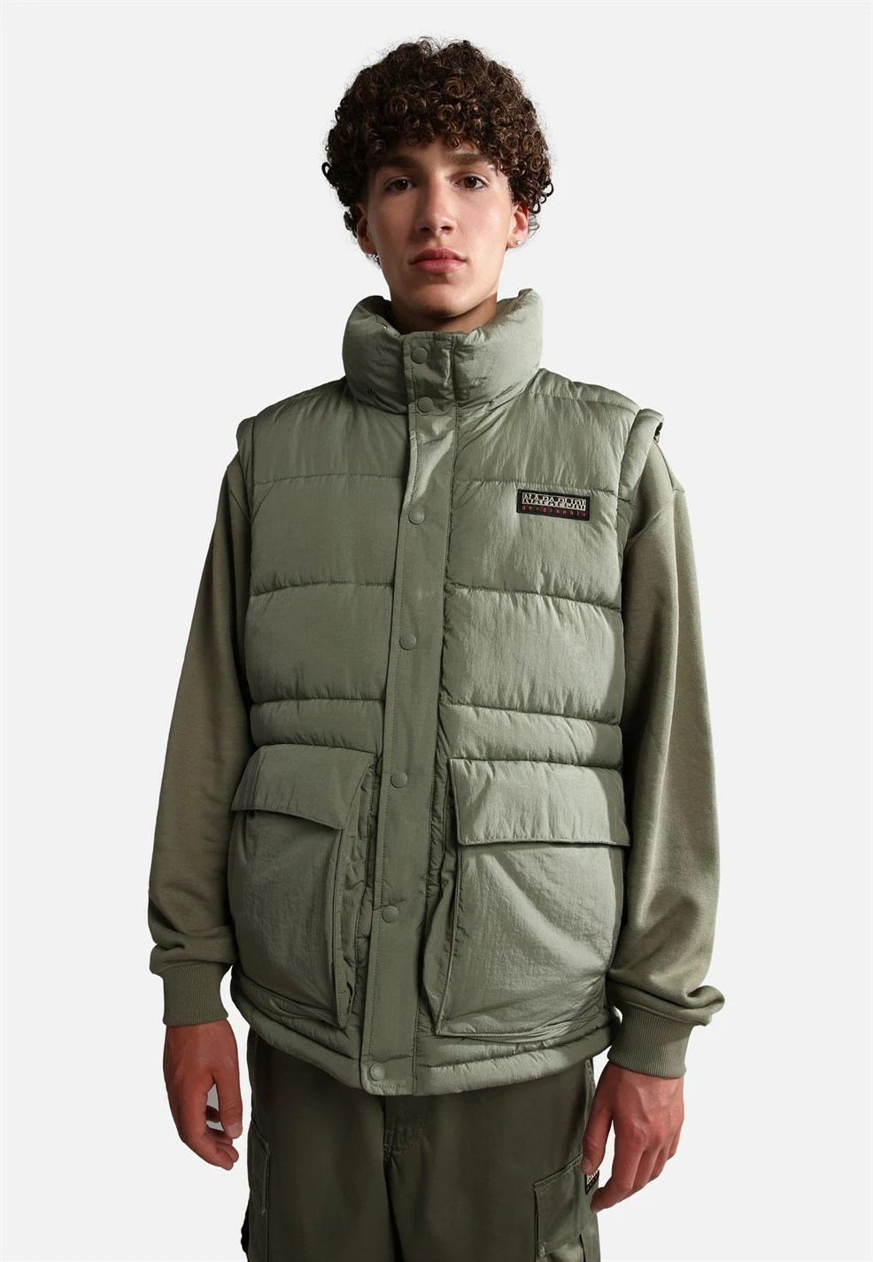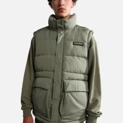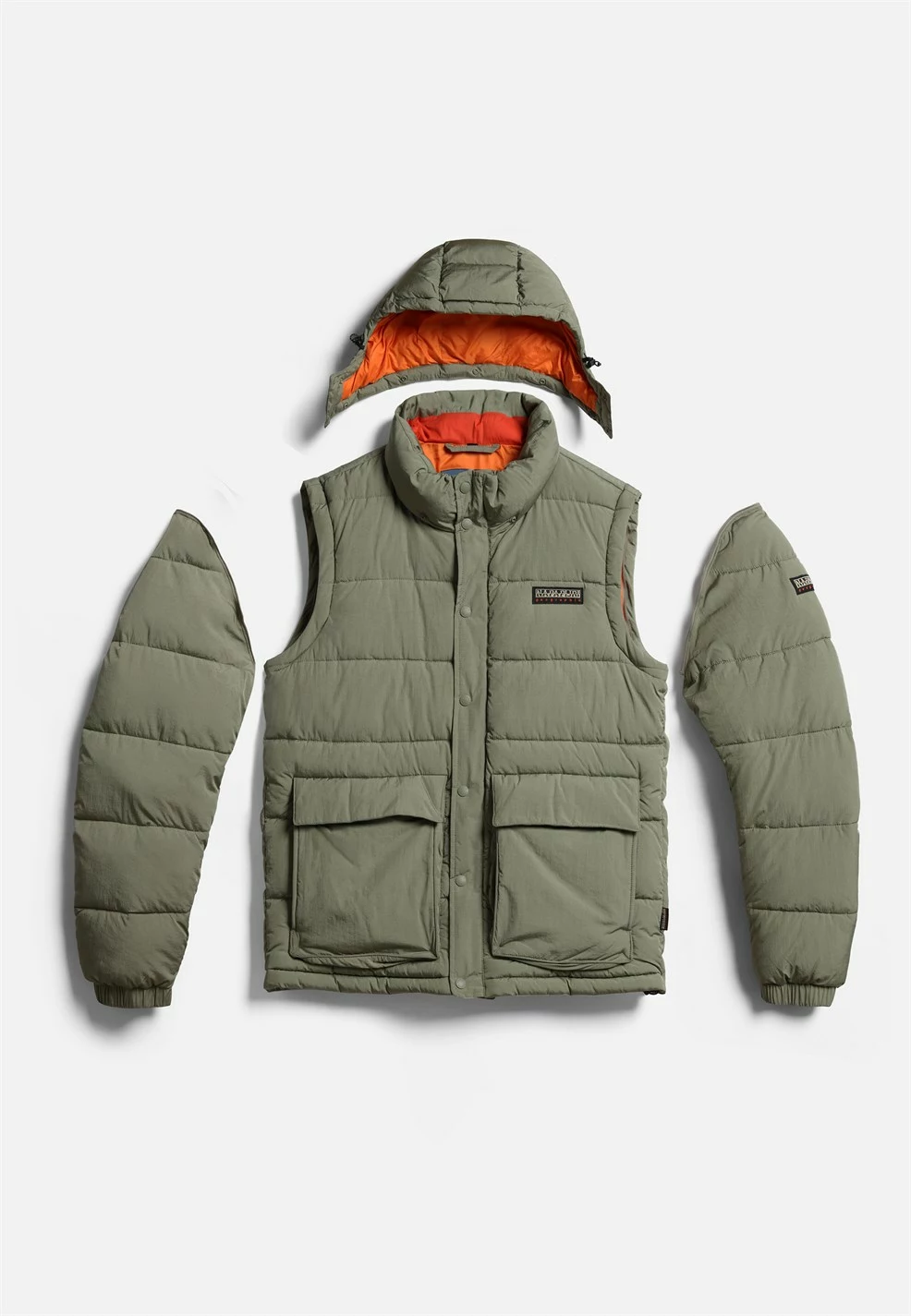 The Napapijri A-chairlift Jacket is a perfect, fully quilted transeasonal jacket, from early autumn to late winter, it features a detachable hood, detachable sleeves, and incorporates recycled down-free Thermo-Fibre™ padding insulation for superior thermoregulation.