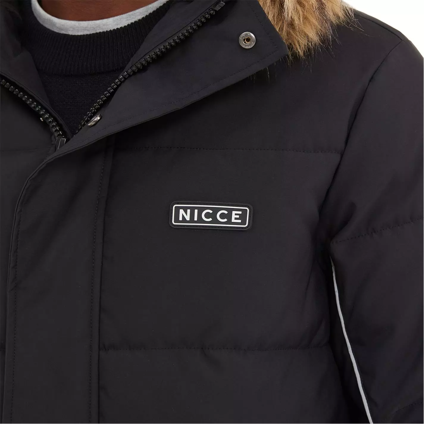 This Nicce Parka is a great addition to your winter wardrobe, styled in a regular fit with a fixed hood and removable fur trim, full zip fastening and adjustable sleeve cuffs for added comfort. The look is completed with reflective piping and signature Nicce branding.