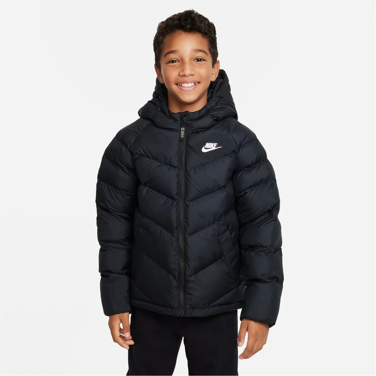 This unisex Nike NSW Filled Jacket is perfect for chilly autumn weather, featuring a full zip fastening front with a lined hood and lightweight fill that helps to protect them from the elements. A block design teamed with quilted stitching detail gives a stylish touch, completed with the Nike Swoosh branding. Please note: The style you receive may vary from the image shown.
