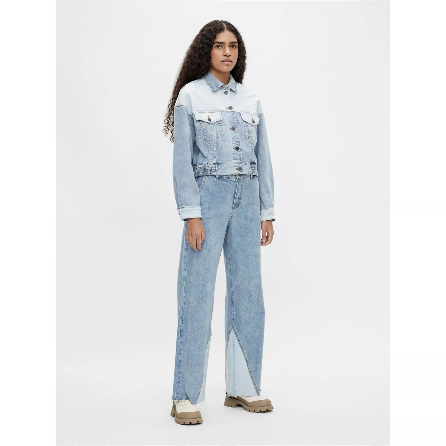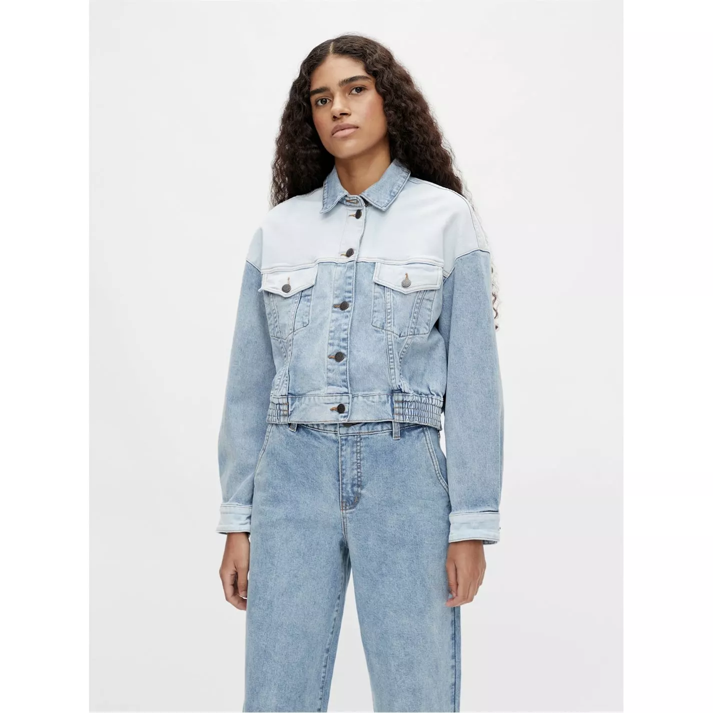 A modern take on the classic denim look, the Marina Jacket by Object is crafted from a organic cotton for premium denim finish. The jacket features a pointed collar with full button fastening, long sleeves with button cuffs, two front pocket with button-flap closure, elasticated hem and cut in a regular fit. The look is completed by contrast patches of denim stitched together with seam detailing throughout. Material, 99% organic cotton, 1% elastane. Machine Washable.