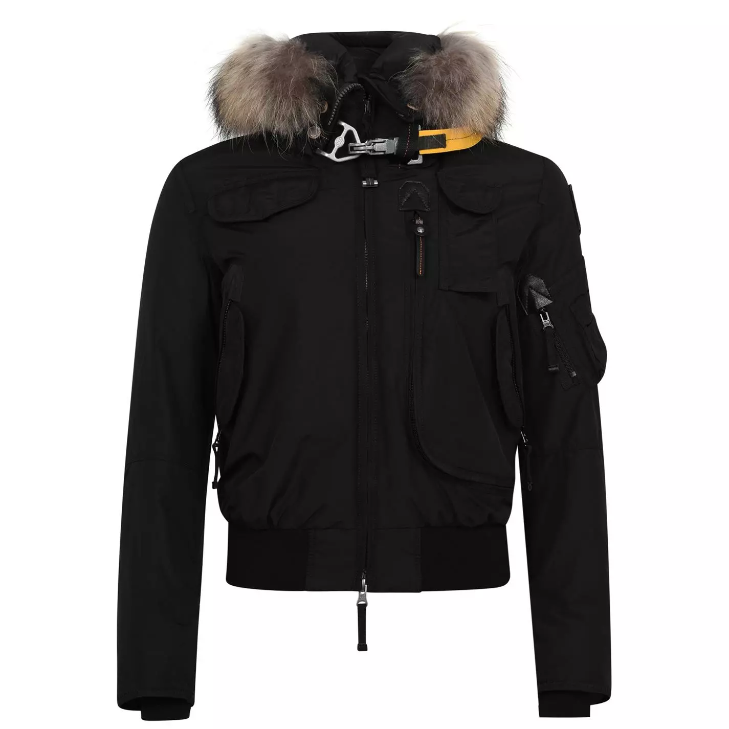 Invest in your outerwear with the parajumpers Gobi Jacket. Designed with a detachable Coyote fur trim to the hood, this bomber style jacket is characterised by multiple zip fastening pockets, so there’s no need for a bag, this jacket will hold all your essentials. With ribbed cuffs and hem, this zip up jacket is padded with a feather down filling at a power rating of 700, you’ll feel toasty all season long. Crafted with a double zip fastening to the front, this jacket is finished with the exclusive snap hook to the neck and the PJS logo patch to the sleeve.