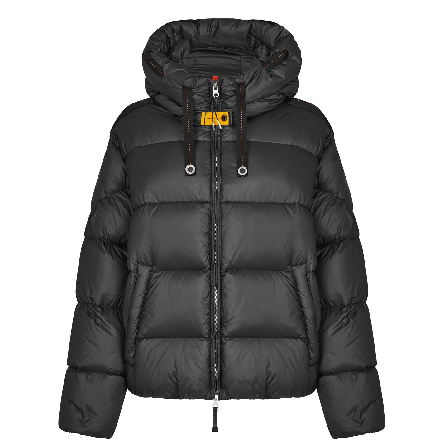 Update your outerwear with the Tilly Bomber Jacket from parajumpers. Made from a water-repellent and wind-proof nylon in a boudin quilted construction, this bomber is filled with 100% duck down for a warm and weatherproof wear. Designed with elasticated cuffs at the sleeves and an elasticated hem to keep you insulated, the Tilly also provides a two way zipped front and drawstrings at the hood for a practical touch. With twin hand pockets and the iconic yellow neck strap, this oversized bomber is finished with the Parajumpers logo stitched to the sleeve.