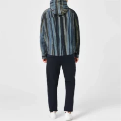 Complete your stylish ensemble with the Ripstop Stripe Jacket by Paul Smith. Crafted in a soft polyamide material, this jacket is cut in a regular fit and features a central zip fastening with a storm flap, a toggle adjusted fixed hood, long sleeves, touch close cuffs and two large pockets to the front to add to the functionality. The look is finished with the all-over striped pattern and the Paul Smith brand. Machine washable at 30 degrees.