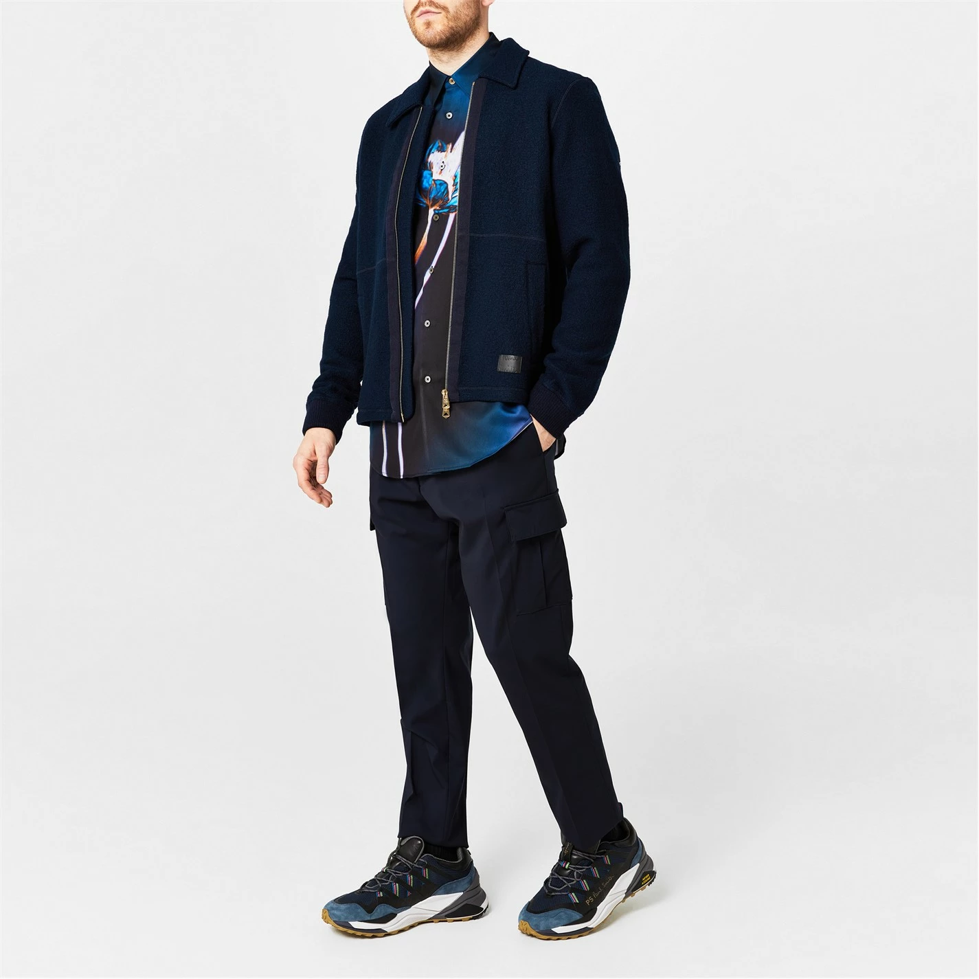 Add a minimal aesthetic to your smart-casual staples with the paul Smith Zip Through Jacket. Crafted in Portugal from a boiled wool fabrication perfect for those transitional months, this staple layering piece offers a classic point collar with a full zip fastening framed with a fabricated trim for a luxe appeal. Complete with rib-knit cuffs to the long sleeves and two slip pockets, this garment is complete with a branded leather logo patch to the hem for a designer stamp.