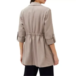 Our lightweight Jesse Waterfall Jacket is designed from a soft, breathable fabric and features functional pockets, turn up cuffs and adjustable toggles at the waist for a secure fit. Finished with shiny silver trim hardware.