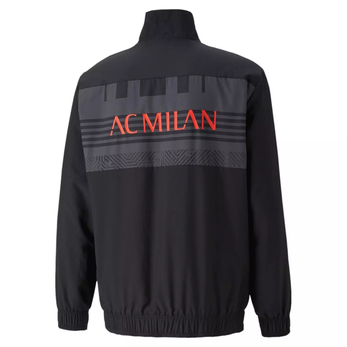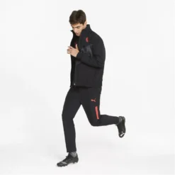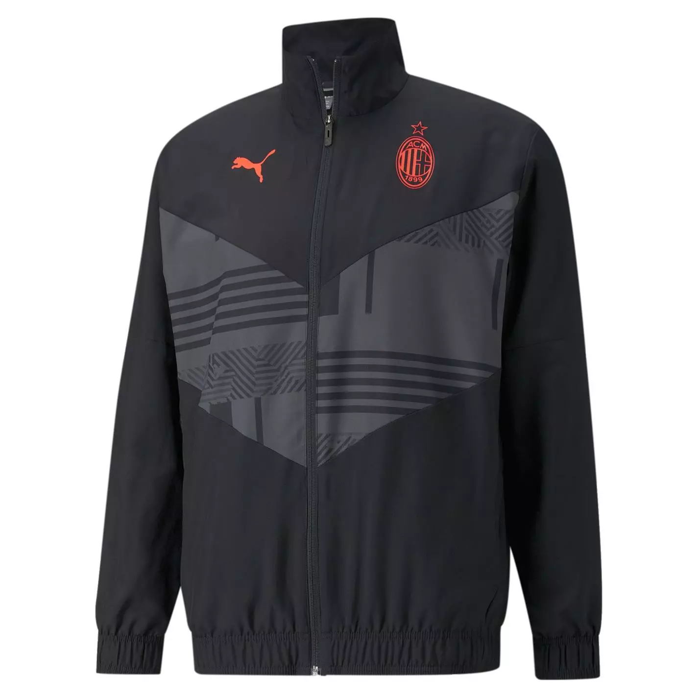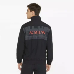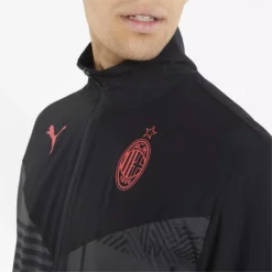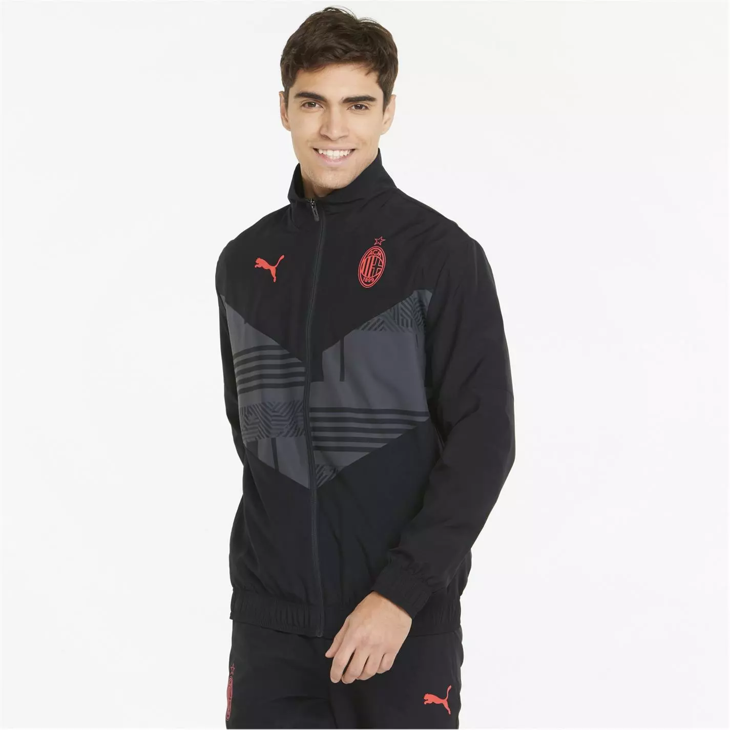 This Puma AC Milan Pre Match Track Jacket is crafted with full zip fastening and long sleeves for a classic look. It features ribbed trims for comfort and is a 2 pocket style. This jacket is a lightweight construction with the signature Puma and AC branding on show.