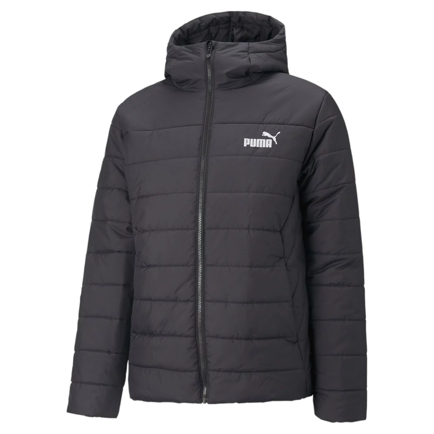 This Puma Essential Padded Jacket is crafted with full zip fastening and long sleeves for a secure fit. It features a hooded neckline plus two hand pockets for a classic look and is a lightweight construction. This jacket is a solid colouring throughout and is complete with Puma branding.