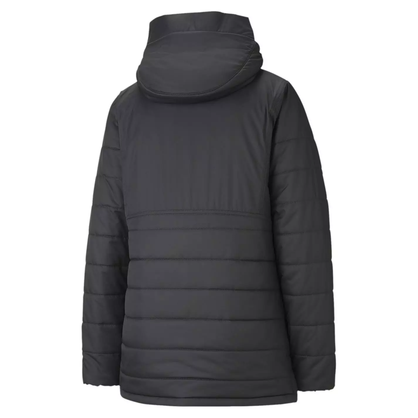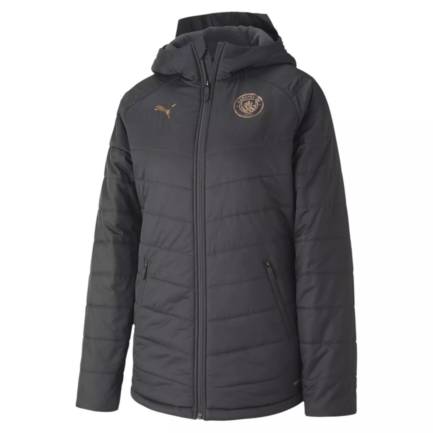 This Puma Manchester City FC Bench Jacket is crafted with full zip fastening and long sleeves for a secure fit. It features a hood as well as two zipped hand pockets for a classic look and is a lightweight construction. This jacket is designed with the team badge to one side of the chest to show your support and is finished with a printed logo to the other to finish the look with Puma branding.