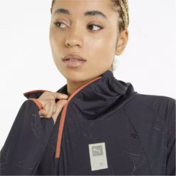This Puma Mile Jacket is crafted with half zip fastening and long sleeves for a secure fit. It features a hooded neckline as well as a zipped pocket for a classic look and is a lightweight construction. This jacket is designed with a signature logo and is complete with Puma branding.