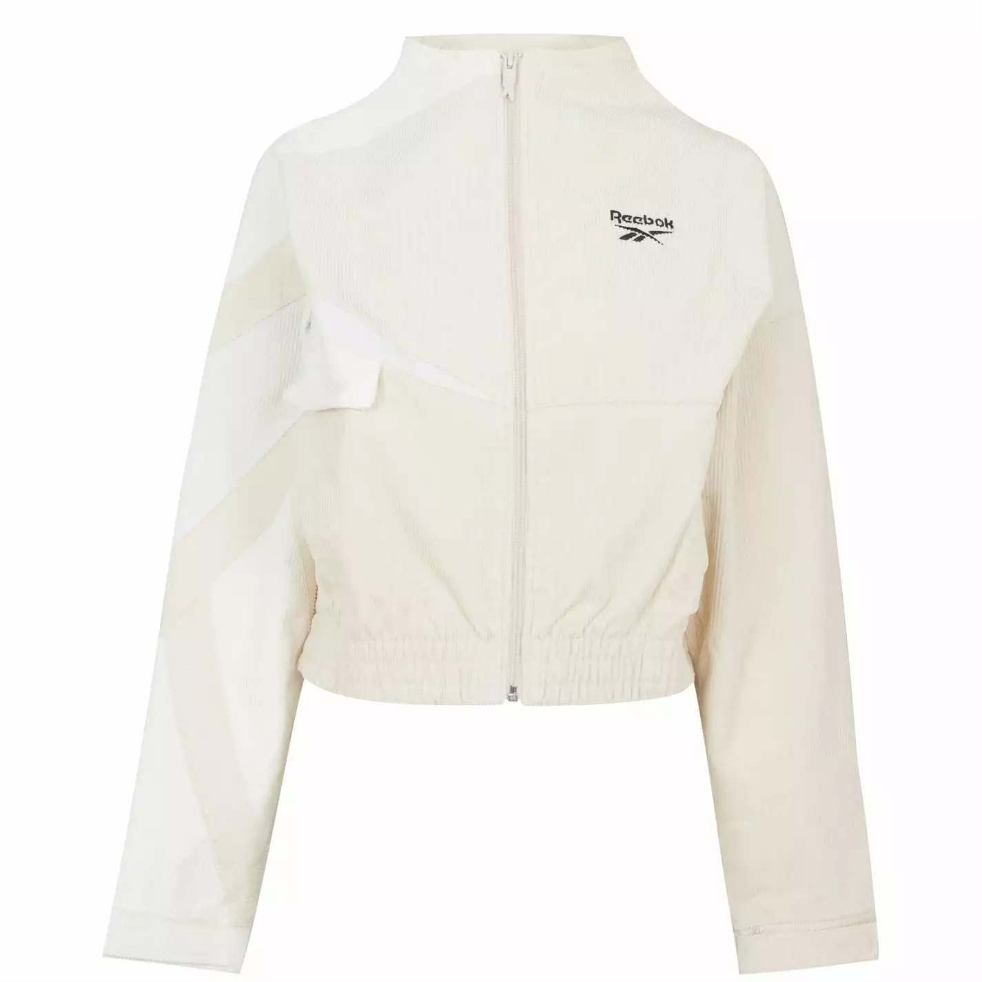 Upgrade your collection with this Corduroy Track Jacket from Reebok. Crafted in a soft cotton material with a polyester lining, this tracksuit jacket is cut in a regular fit and features full zip fastening, a high neckline, long sleeves, touch close fastened cuffs, an elasticated waistband, two open side pockets and a touch close flap pocket to the chest for secure storage. Designed with a solid colouring throughout, the look is finished with the brand’s signature logo embroidered to the chest for brand recognition. Main Material: 100% cotton. Lining: 100% polyester (recycled). Machine washable at 30 degrees.