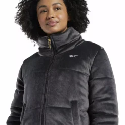 Complete your everyday fits with the Reebok Studio Puffer Jacket. A poly velour construction with a central zip fastening and elasticated cuffs to keep out the cold. The padding promises to keep you warm during the colder months and the side pockets add a practical touch. The design is complete with the Reebok logo at the chest for brand appeal.