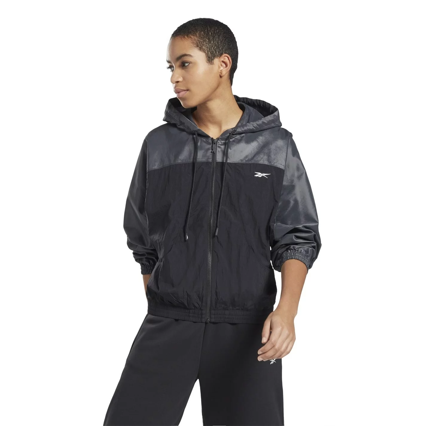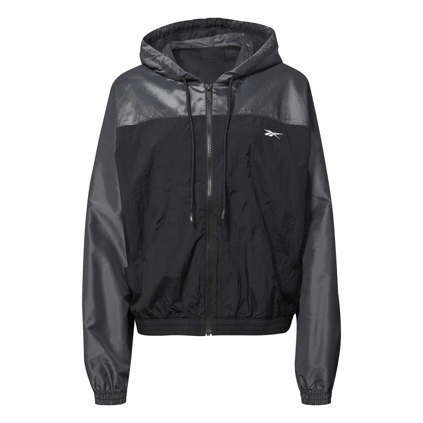 This Reebok Soft Shell Woven Jacket is crafted with full zip fastening and long sleeves with elasticated cuffs for comfort. It features a drawstring adjustable hood and two hand pockets for a classic look. This jacket is a lightweight construction designed with a signature logo and is complete with Reebok branding.