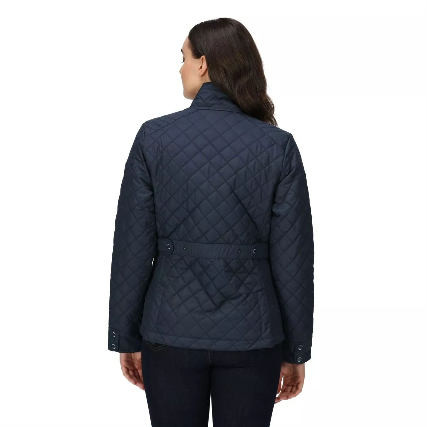 The Charleigh jacket from Regatta. Head on winter walks in style. This women’s winter jacket comes with a water-repellent coating and stylish diamond pattern design. The elasticated belt adjuster to the back provides a flattering fit.