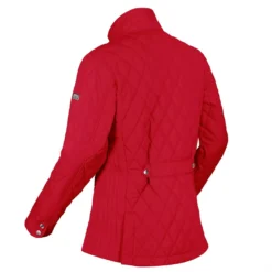 The women’s Charna Jacket from Regatta is made of showerproof micro poplin fabric diamond quilted with warming Thermoguard insulation. Cut hip length with a stand collar and studded back vents for a comfortable fit. With an adjustable waist and soft print lining. With the Regatta Outdoors badge on the left sleeve.