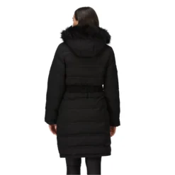 The Daleyza women’s winter jacket from Regatta will keep the cold at bay whilst keeping you on trend. The women’s jacket is made from hardwearing polyester that comes with a water-repellent finish to keep light rain at bay. The feather-free insulation keeps you nice and warm and its heavyweight fill gives a snug look and stylish feel. Finished with a luxury faux fur trim to the hood.