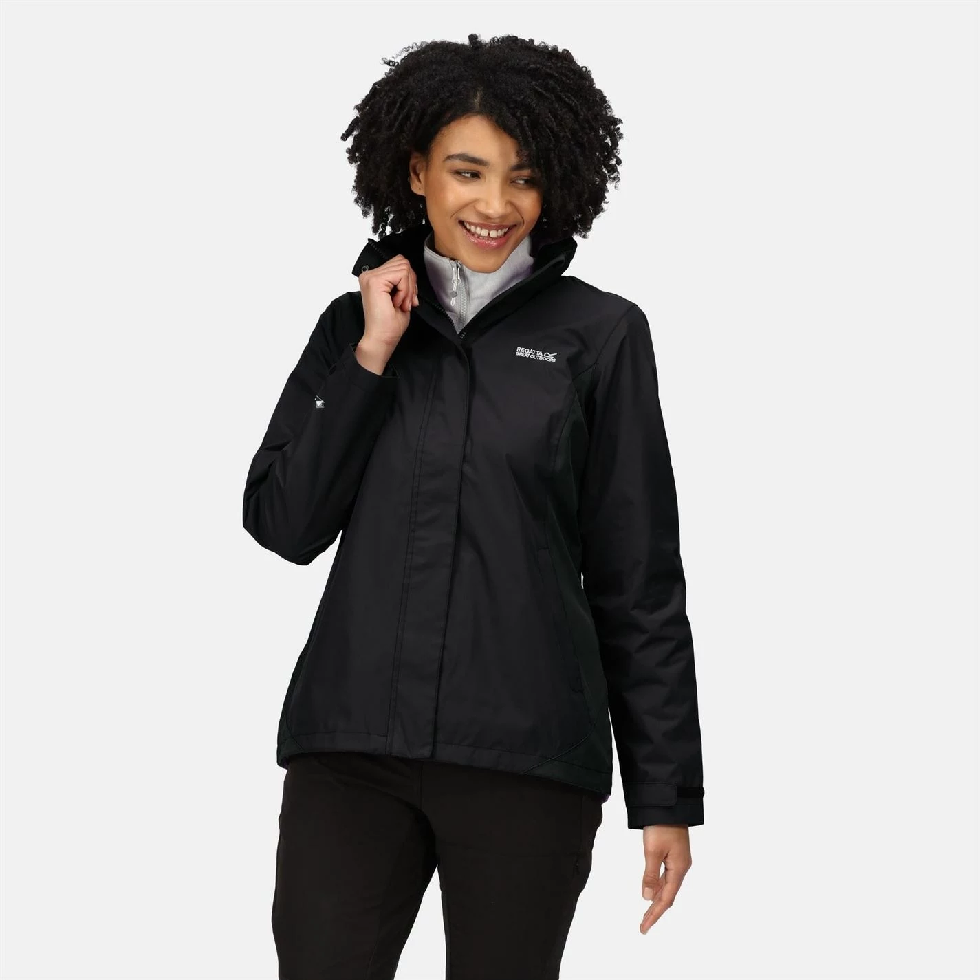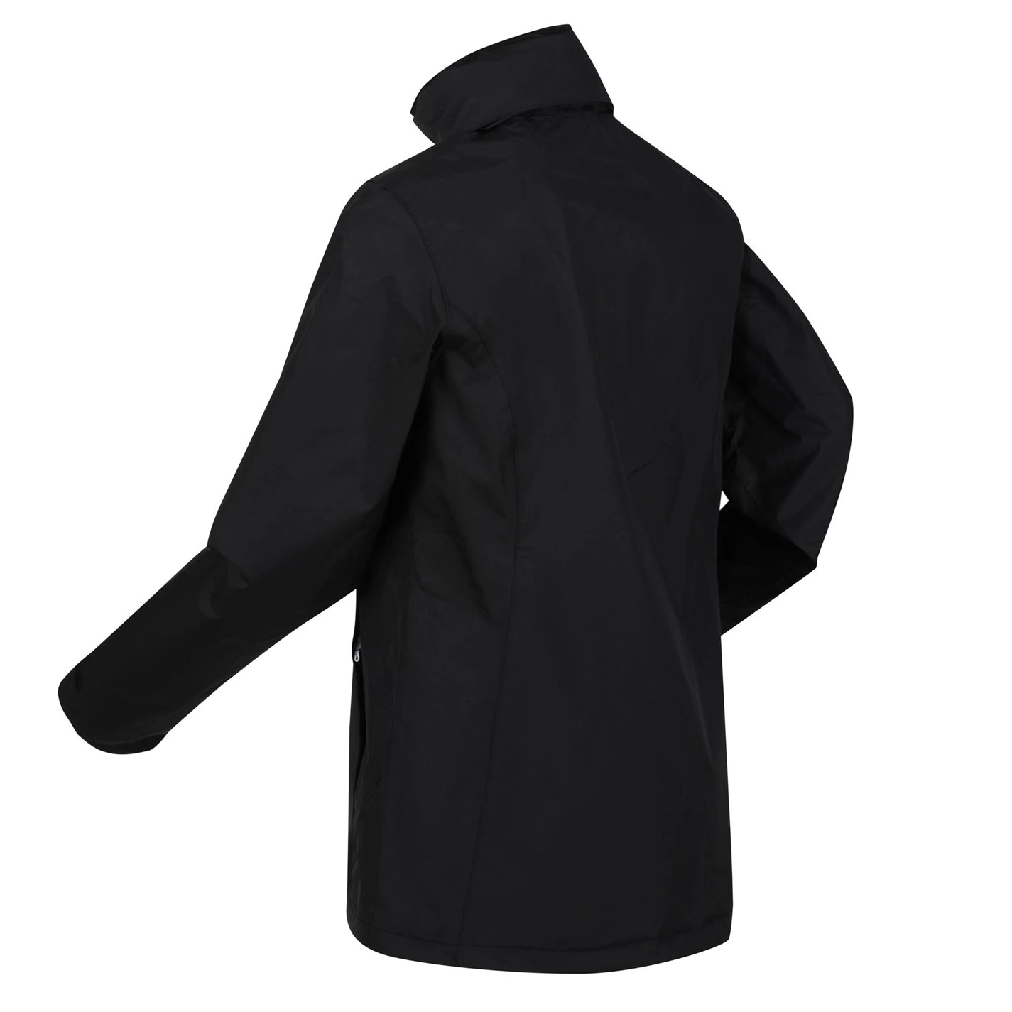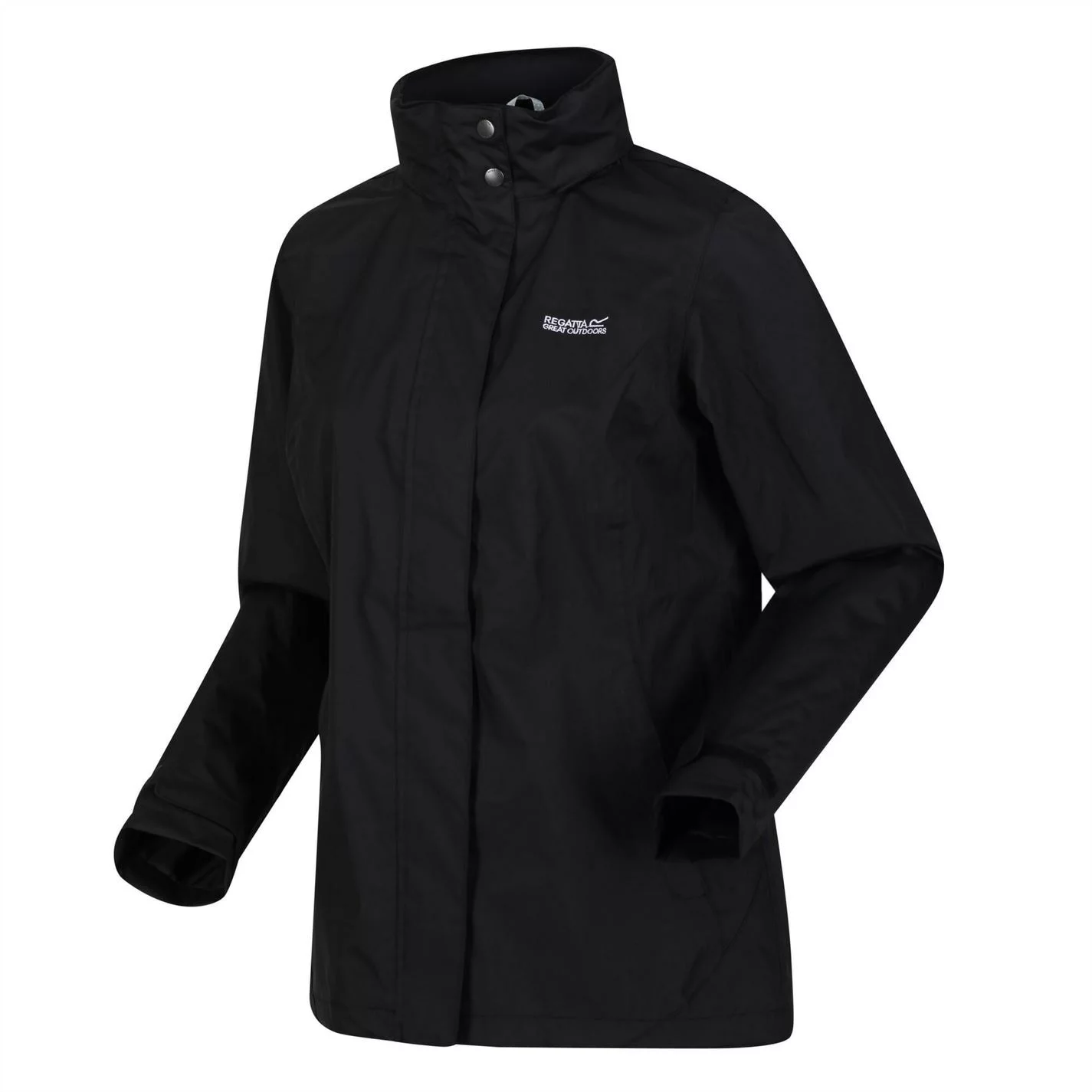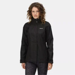 The Daysha jacket from Regatta. The women’s shell jacket is made with waterproof fabric with taped seams to keep out the elements. Pull on the hood when rain falls.