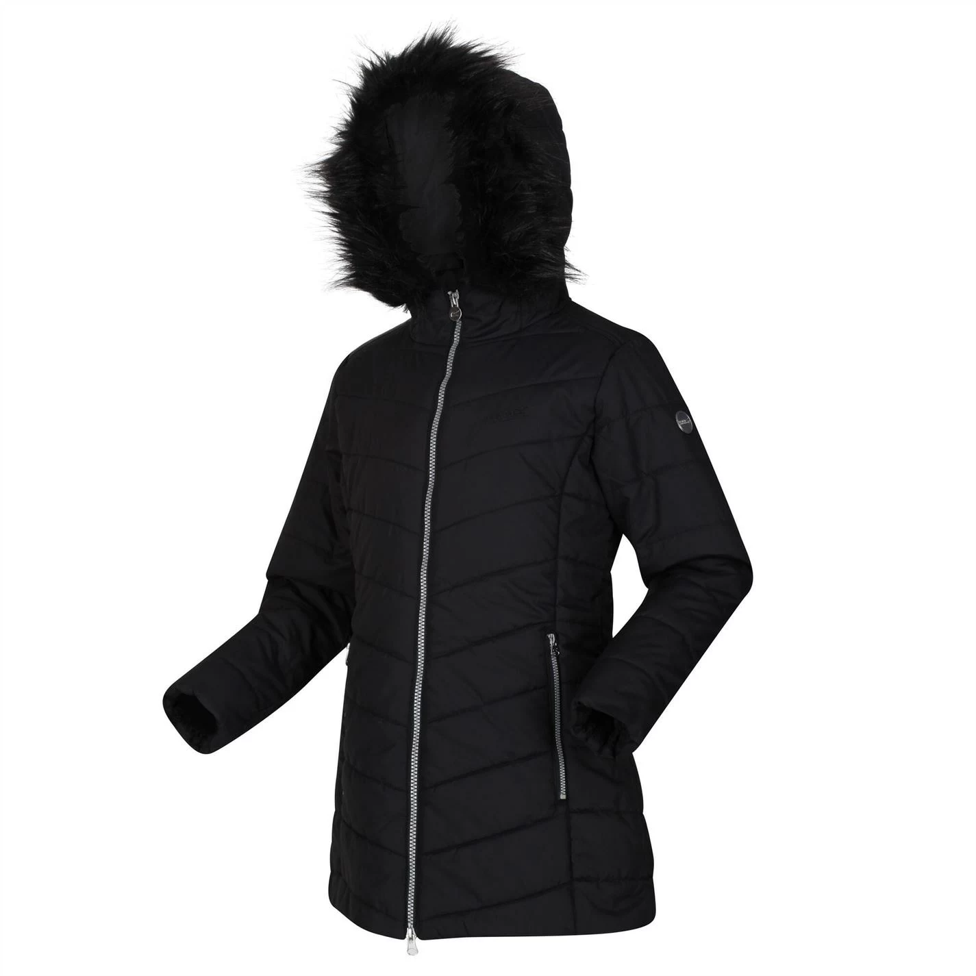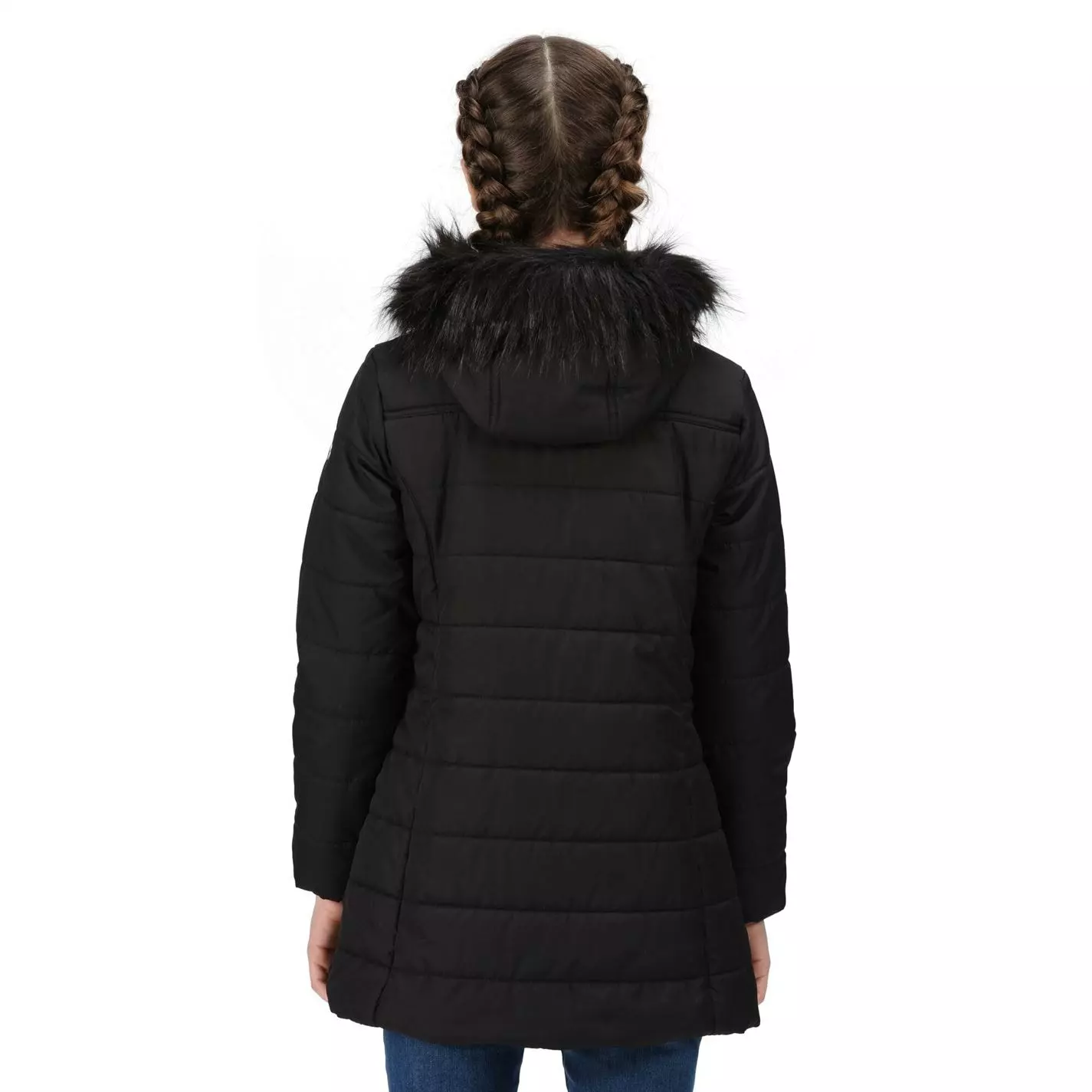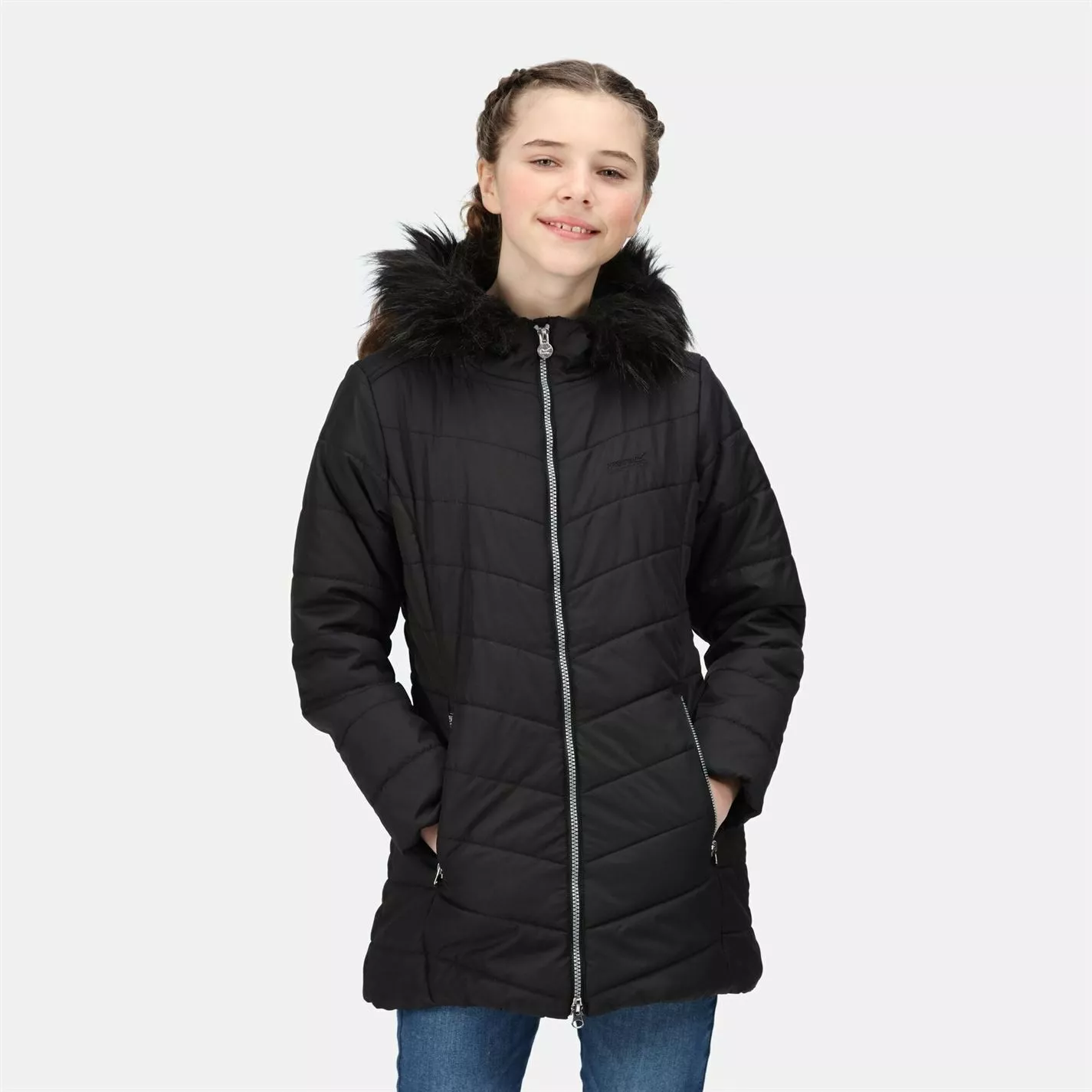 The Fabrizia jacket from Regatta. With a water-repellent finish, and insulation, the Fabrizia is made for winter wear. The kids’ winter jacket is perfect for the school run and weekend adventures with friends. The faux fur trim to the hood adds a stylish edge.
