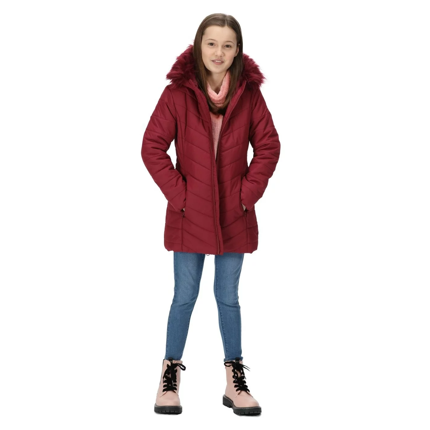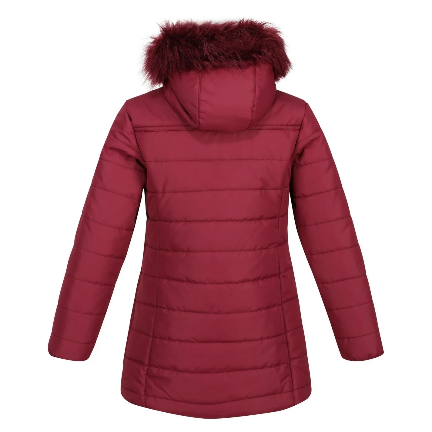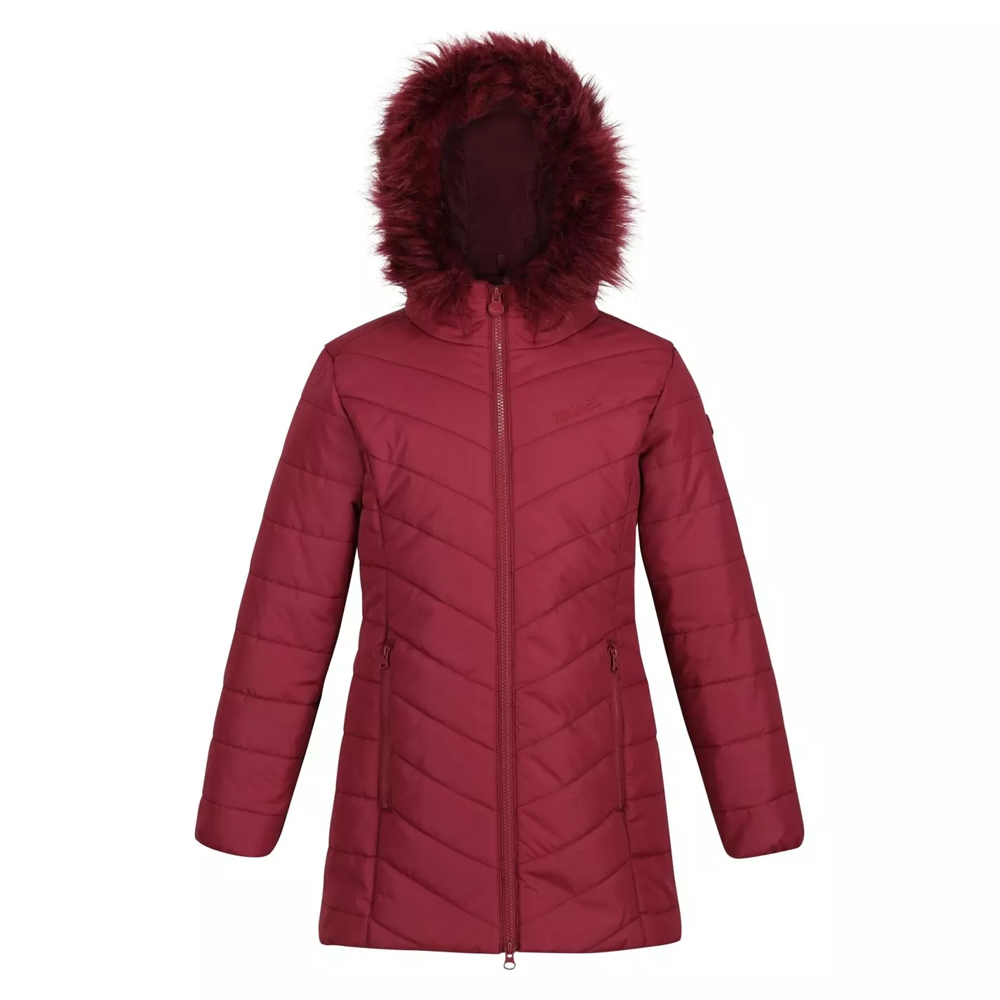 This Regatta Fabrizia Jacket is crafted with full zip fastening and long sleeves for a secure fit. It features a faux fur trimmed hood plus two zipped hand pockets for a classic look and is a lightweight construction. This jacket is a solid colouring throughout and is complete with Regatta branding.