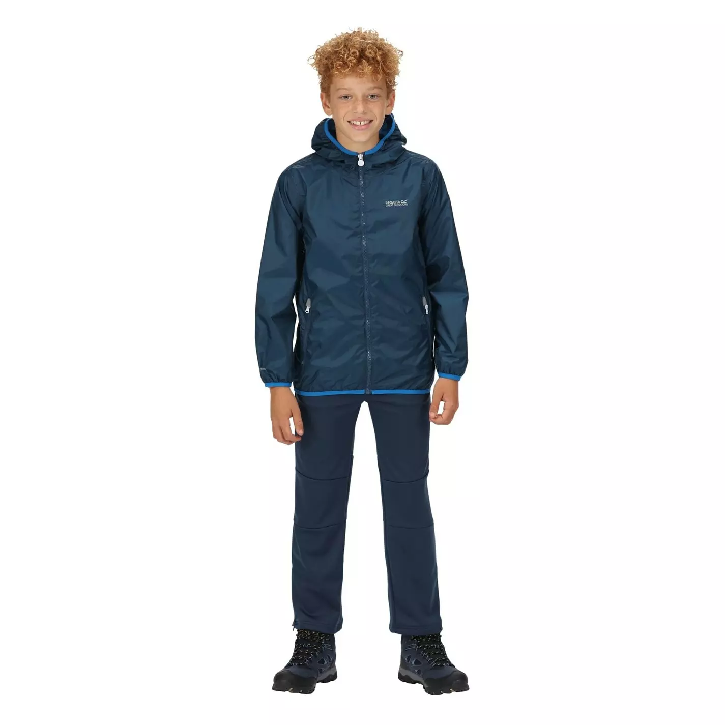 The Kids Regatta Lever II Jacket is a great addition to your little one’s walking attire. Crafted with a central zip fastening along with an elasticated trim to the wrist cuffs and hem that ensures a comfortable fit. The lightweight design also boasts a lined hood along with a water repellent finish to help keep them protected from the elements, two zip pockets provide ample space for their essentials and the Regatta branding to the chest completes the look.