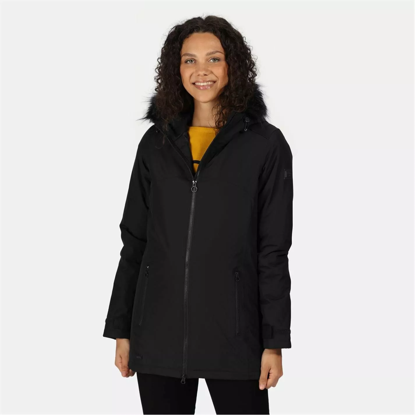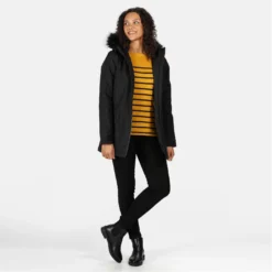 The Myla jacket from Regatta. Head on winter walks in style. This women’s winter jacket comes with a water-repellent finish and a warming insulation to keep you toasty. Back vents provide breathability. When rain falls, pull on the hood with stylish faux fur trim.