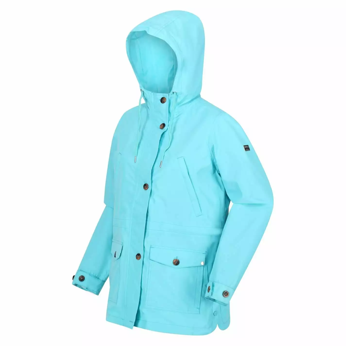 The Nahla women’s jacket from Regatta is just the thing for spring style.The women’s waterproof jacket is made with Isotex 5000 polyester fabric and features taped seams for great protection from rain. There’s a soft taffeta lining for comfort. The women’s jacket is ideal for summer evening walks. The adjustable cuffs and shock cord waist provides personalisation. Rest your hands in the handwarmer pockets.