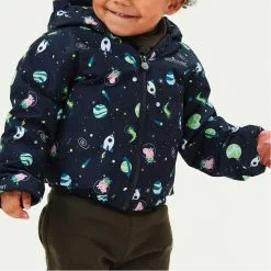 The Padded Muddy Puddle Jacket from Regatta. The jacket comes with a water-repellent finish and a warming insulation. The reflective trim is ideal for visibility in low light. The jacket comes with a Peppa Pig print, perfect for brightening up rainy days outdoors.