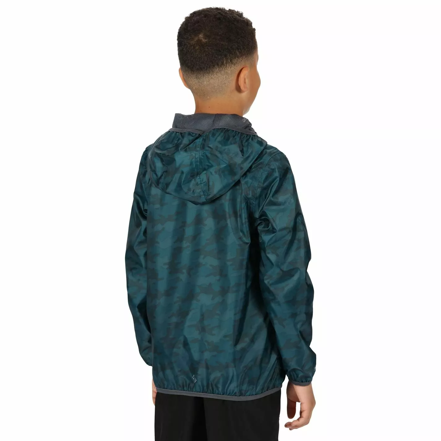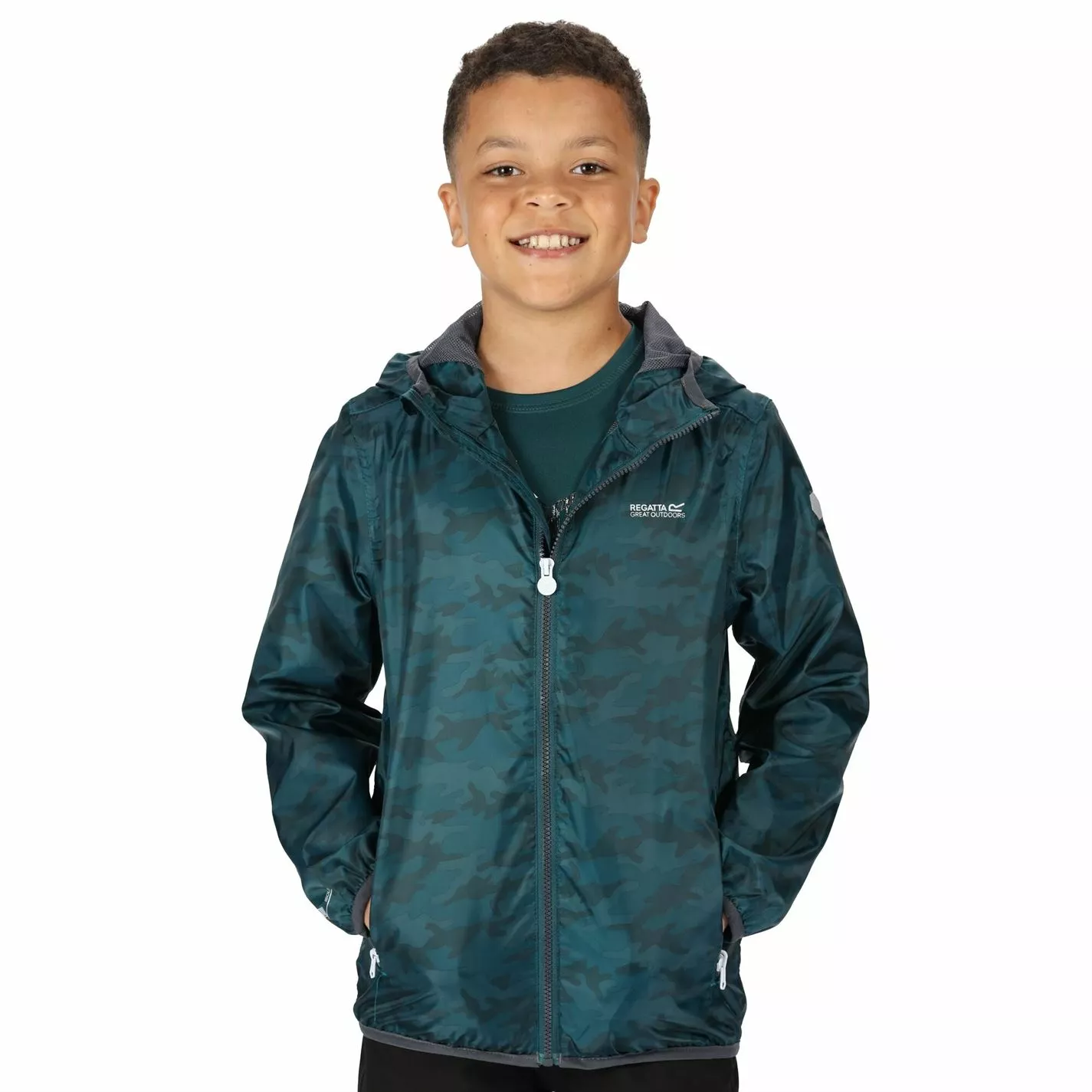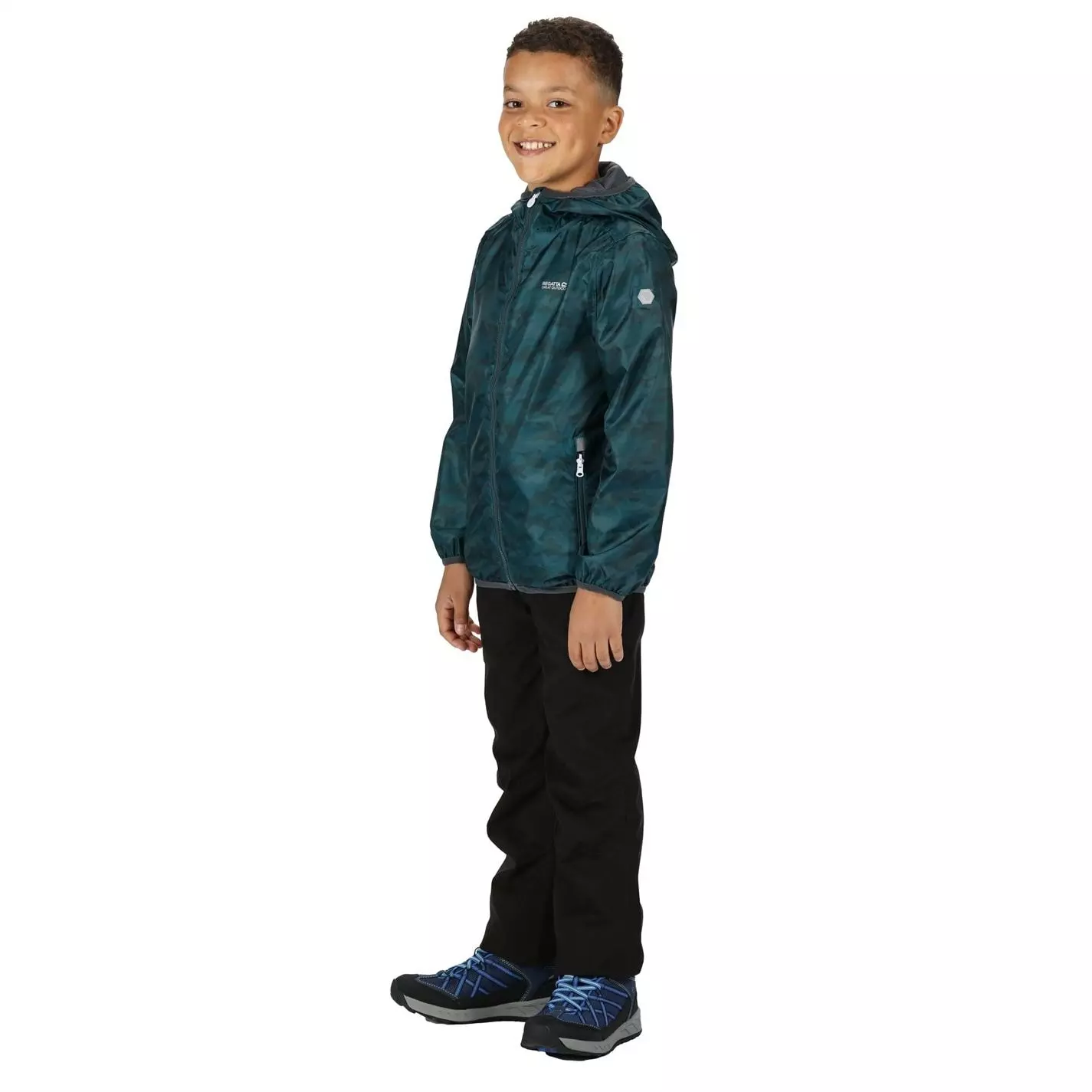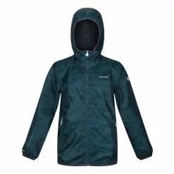 The kids’ Printed Lever Jacket from Regatta is made from seam-sealed waterproof/breathable Isolite 5,000 fabric with a soft mesh lining and stretch binding details. With a neat packaway design and the Regatta print on the chest.