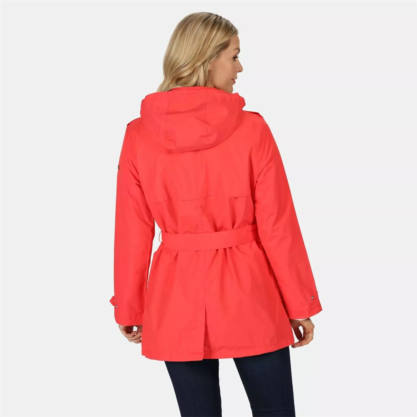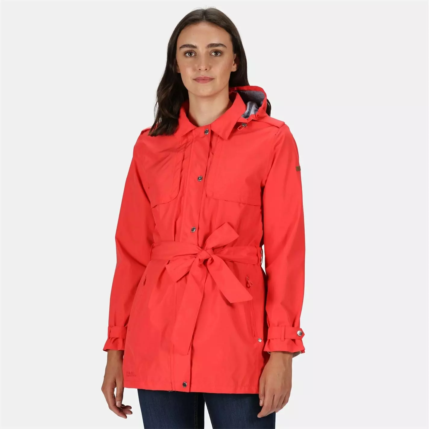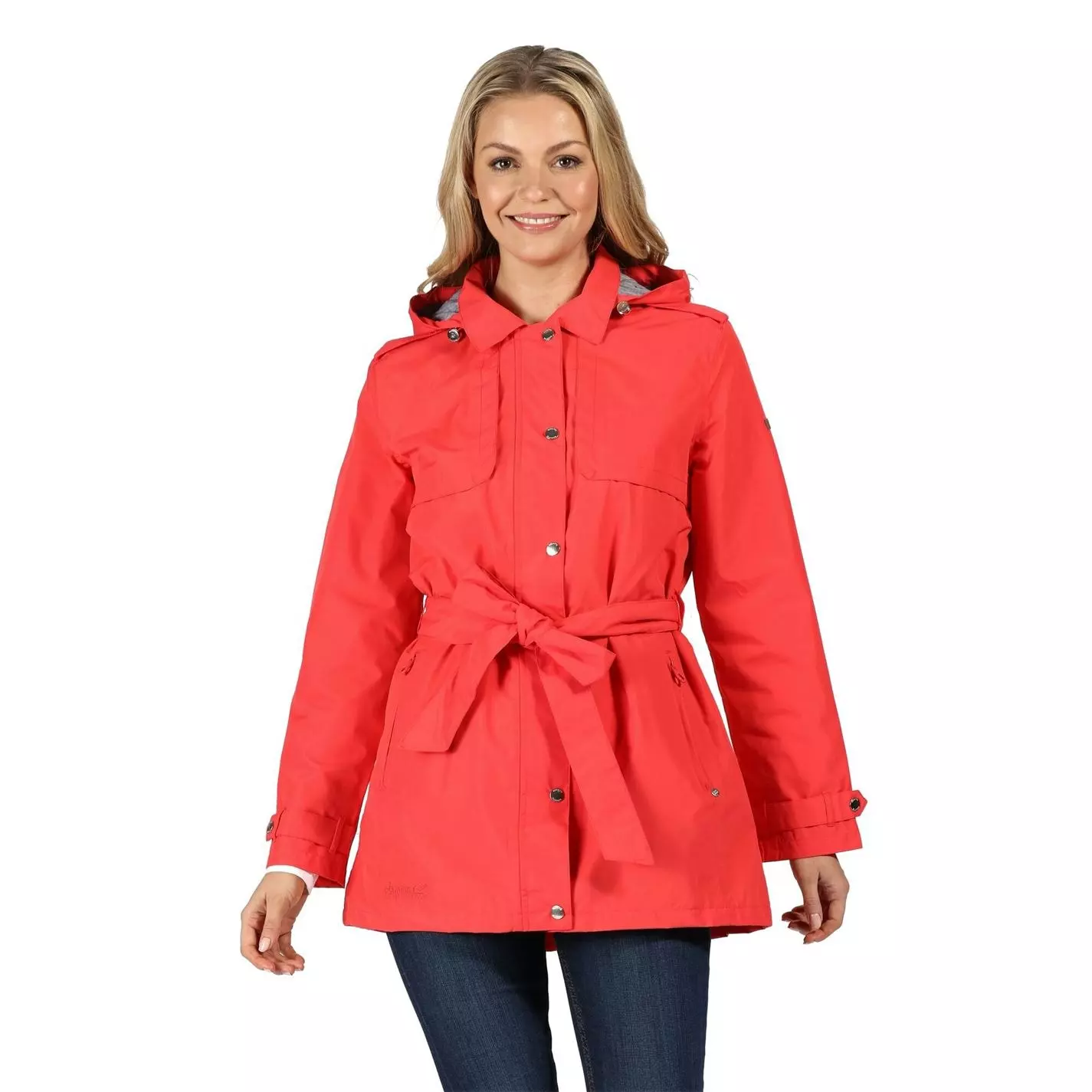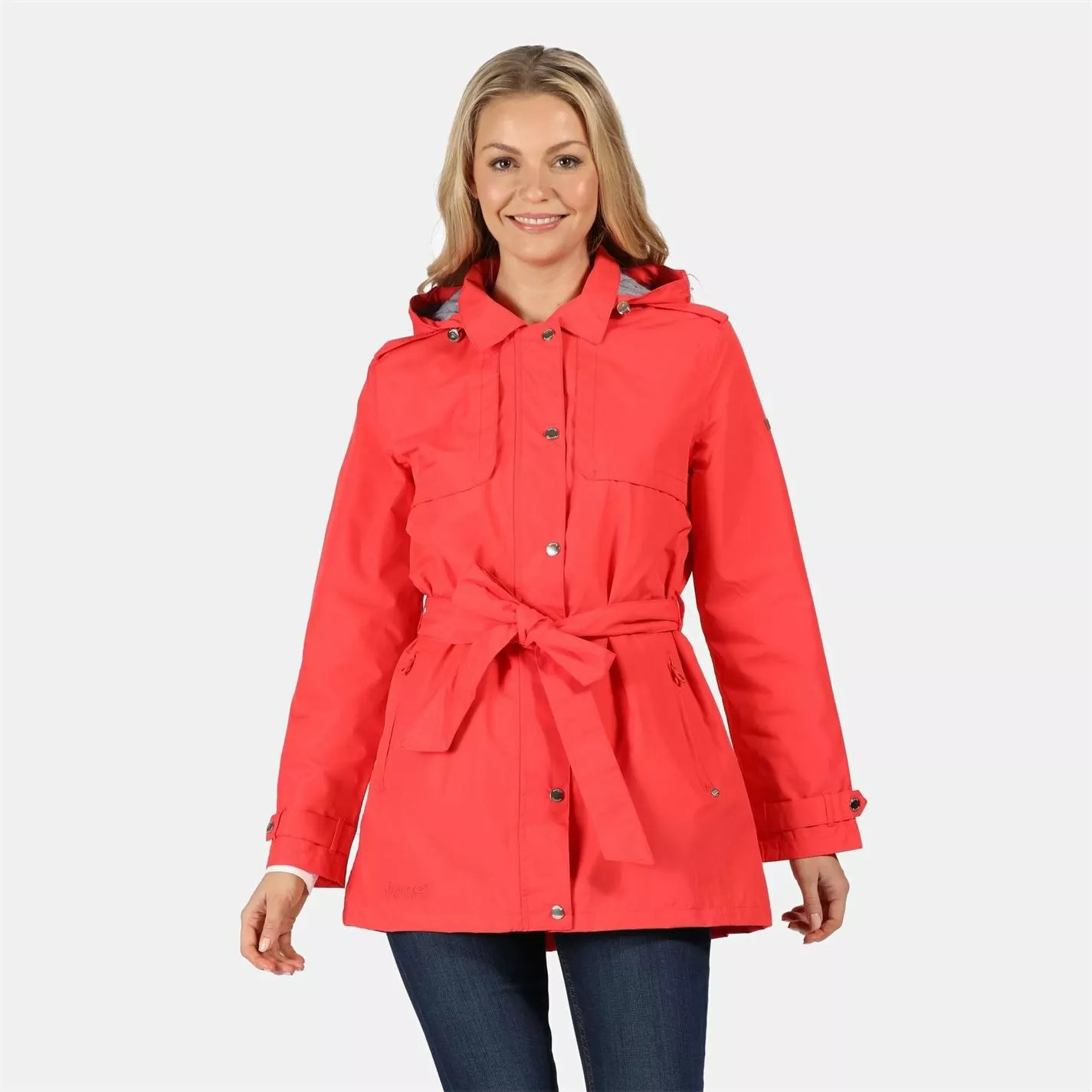 The women’s Garbo Jacket from Regatta made of soft-touch waterproof/breathable Isotex 5,000 polyester with a DWR (Durable Water Repellent) finish and sealed seams. Features include a zip-off hood, epaulettes and turned down collar. Fully lined. With a rubber Regatta badge on the left sleeve.