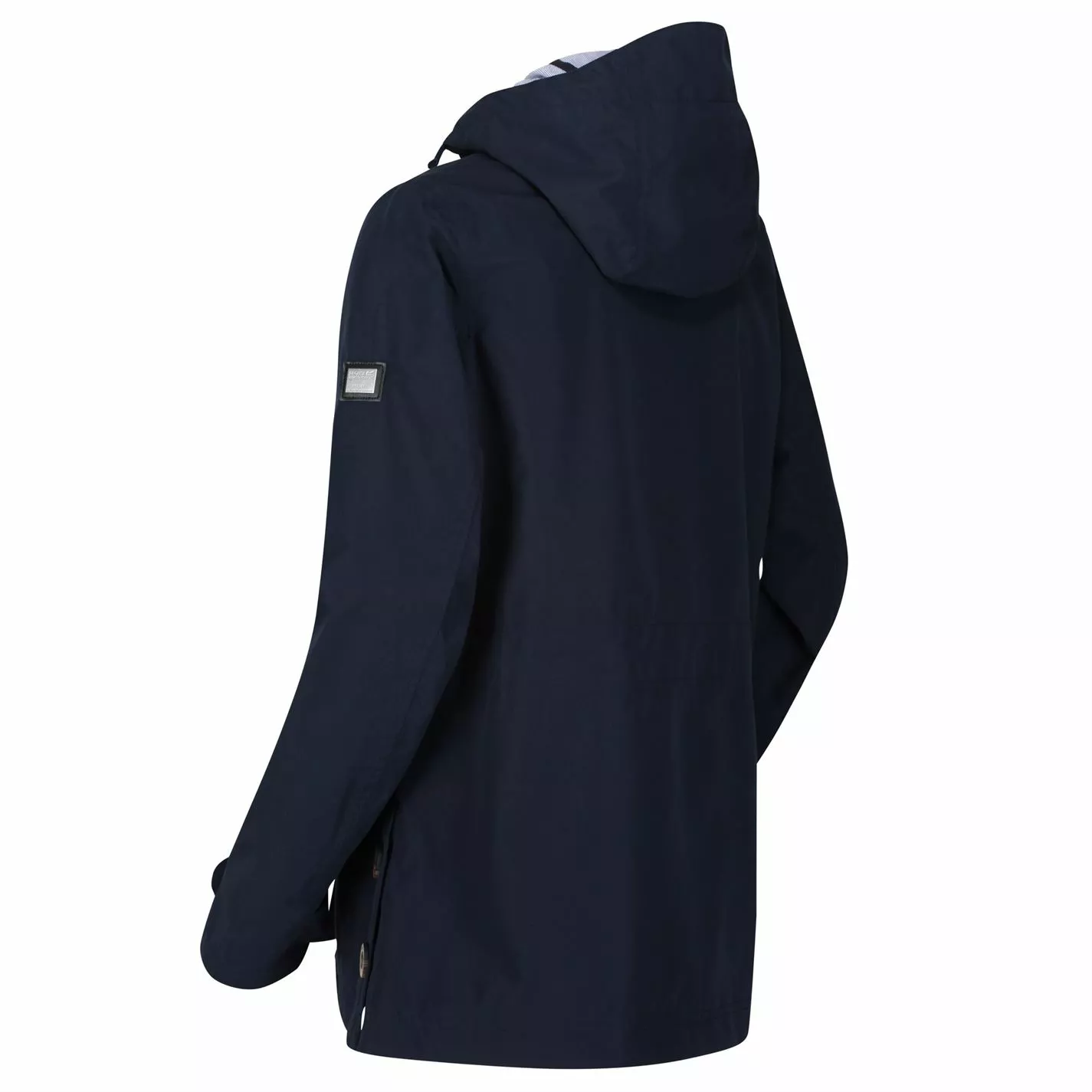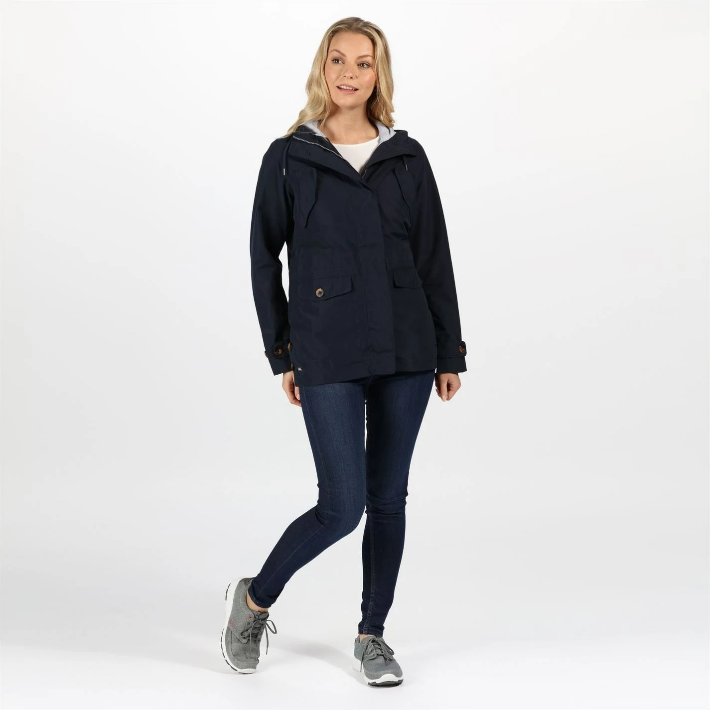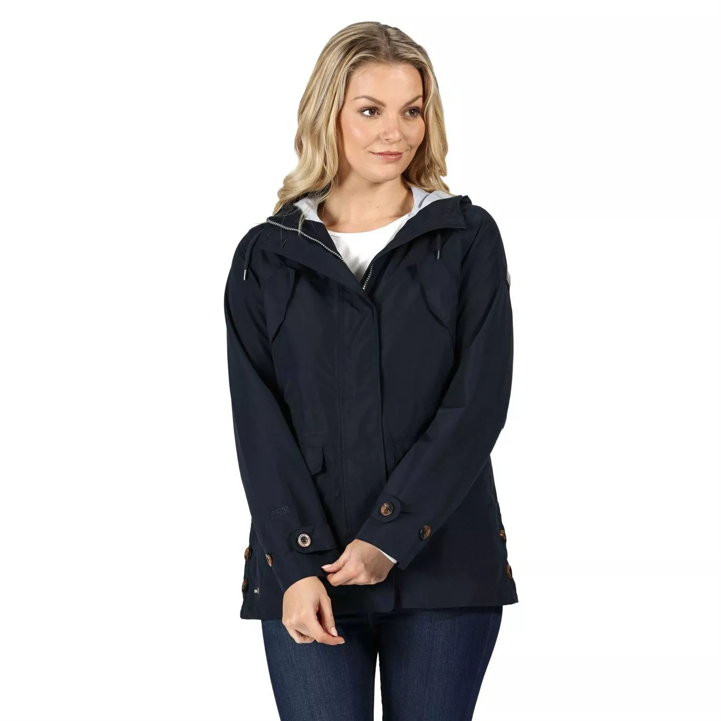 The women’s Ninette Jacket from Regatta is made of waterproof/breathable Isotex 5,000 fabric with sealed seams and a DWR (Durable Water Repellent) finish. With a drawcord hood, buttoned side vents and the Regatta badge on the left sleeve.