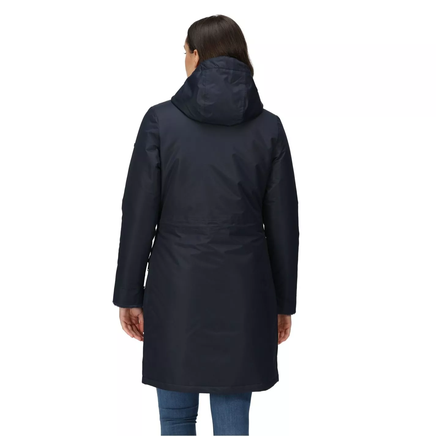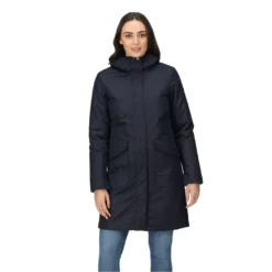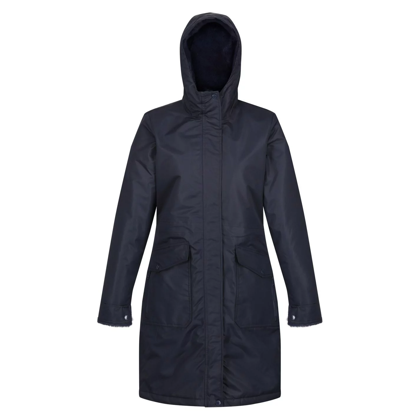 The Rimona jacket from Regatta. Waterproof & breathable with insulation for added warmth. Cut mid-thigh length with curved seams for added protection from the rain. Wear the luxurious faux fur lined hood to see off any rainfall.