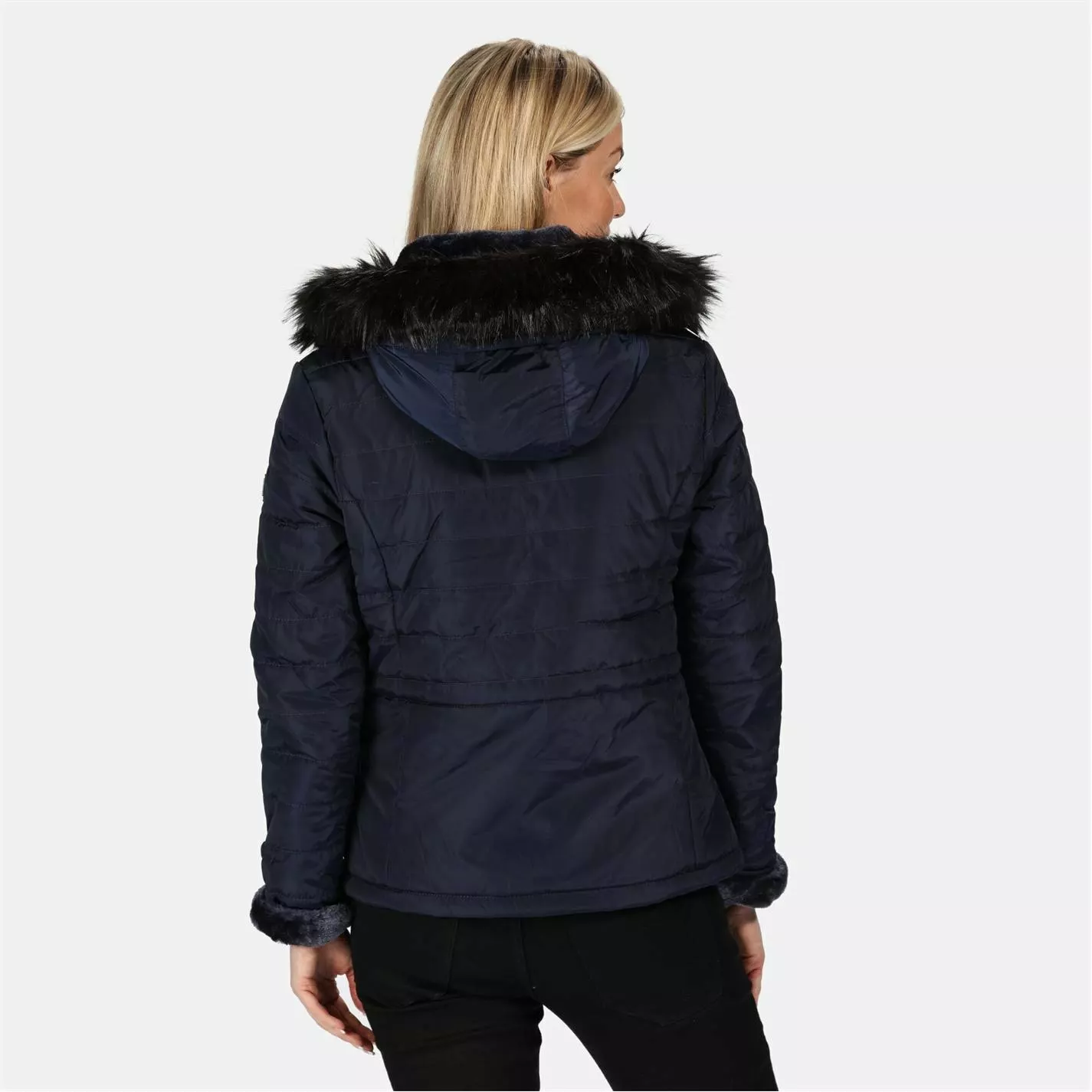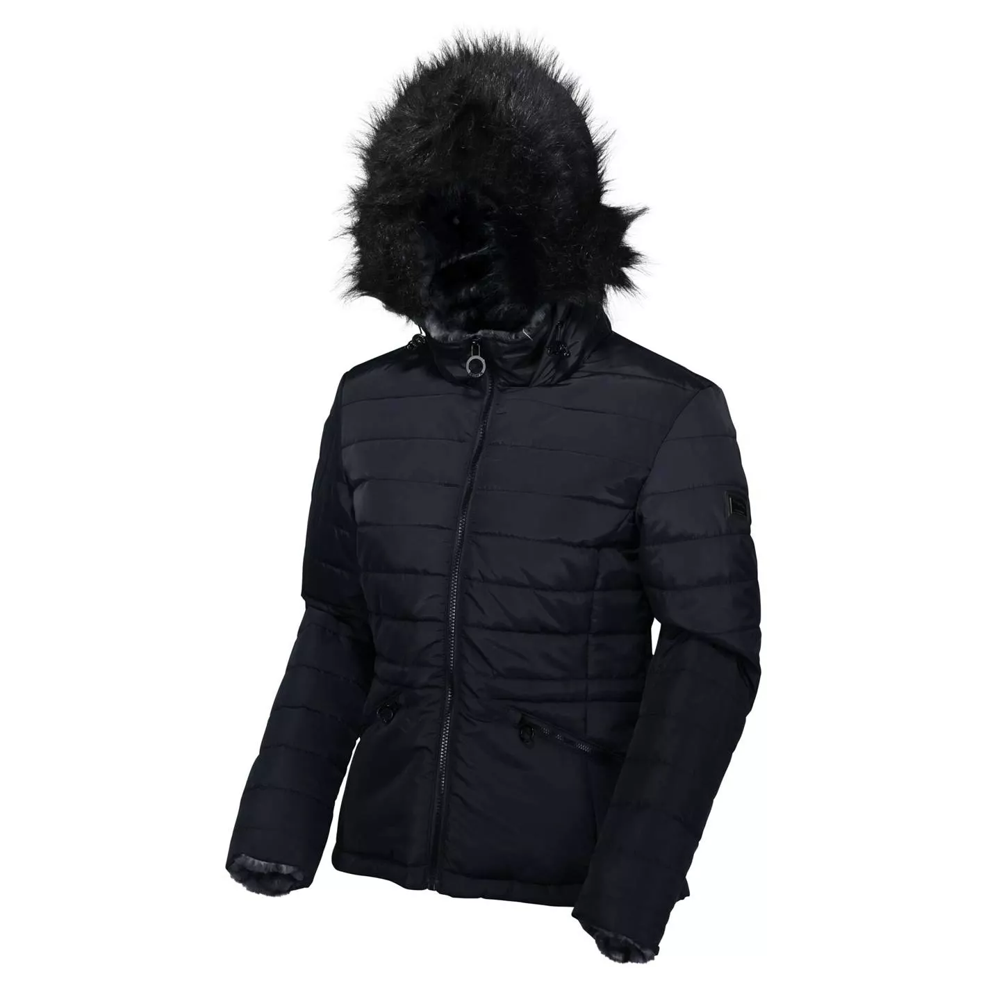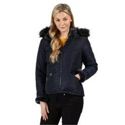 The women’s Westlynn Jacket from Regatta is made of soft-touch showerproof fabric quilted with warming Thermoguard insulation. With flattering curved seams, luxe faux-fur trims and zipped pockets n the side. With the Regatta Outdoors badge on the left sleeve.