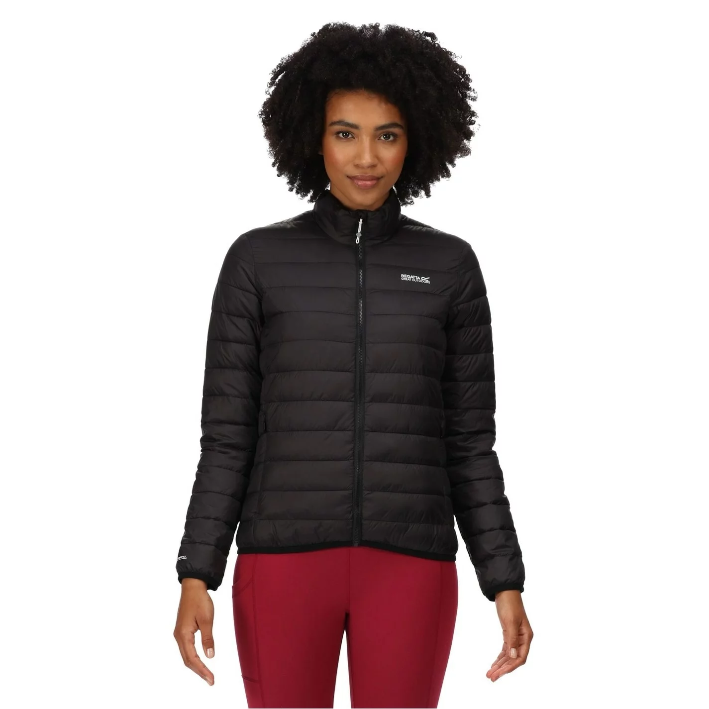 The Women’s Hillpack from Regatta. The jacket comes with a water-repellent finish for protection from light rainfall. The packaway jacket is filled with recycled lightweight insulation to keep you toasty. The bulk-free design packs away into its own stuff sack.