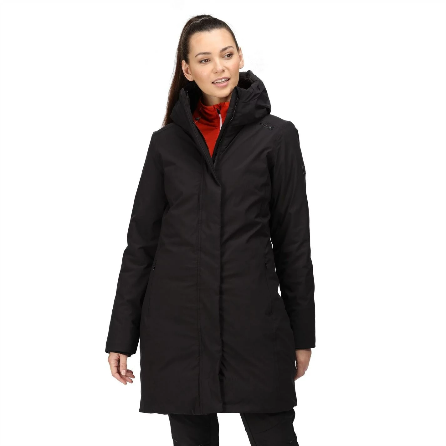 Regatta’s Women’s Yewbank jacket for winter protection. The jacket is made from waterproof and breathable fabric with added heavyweight insulation for winter weather protection. The women’s jacket is made from recycled plastic bottles, so it’s a great sustainable option. The long-length coat comes with side handwarmer pockets to rest your hands.