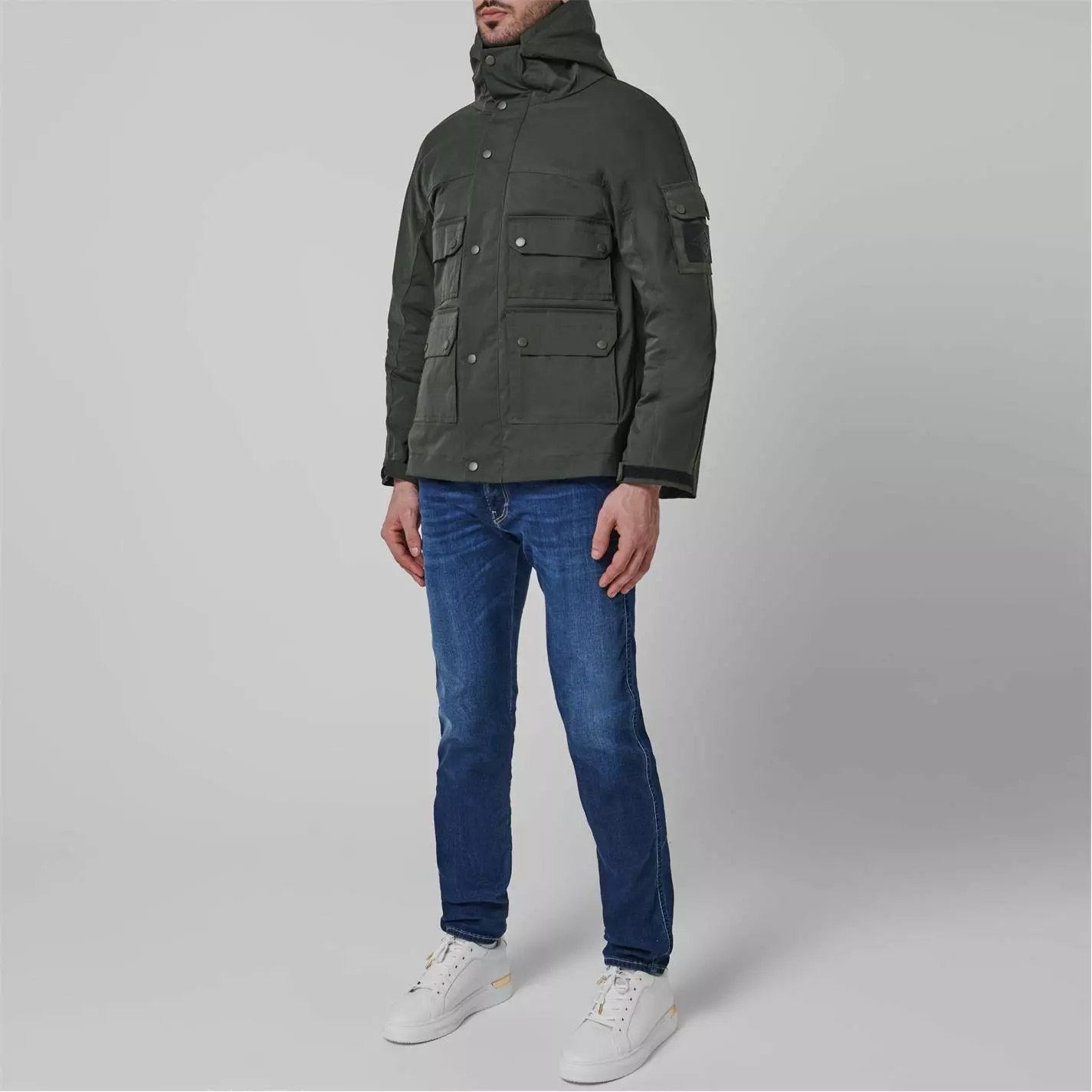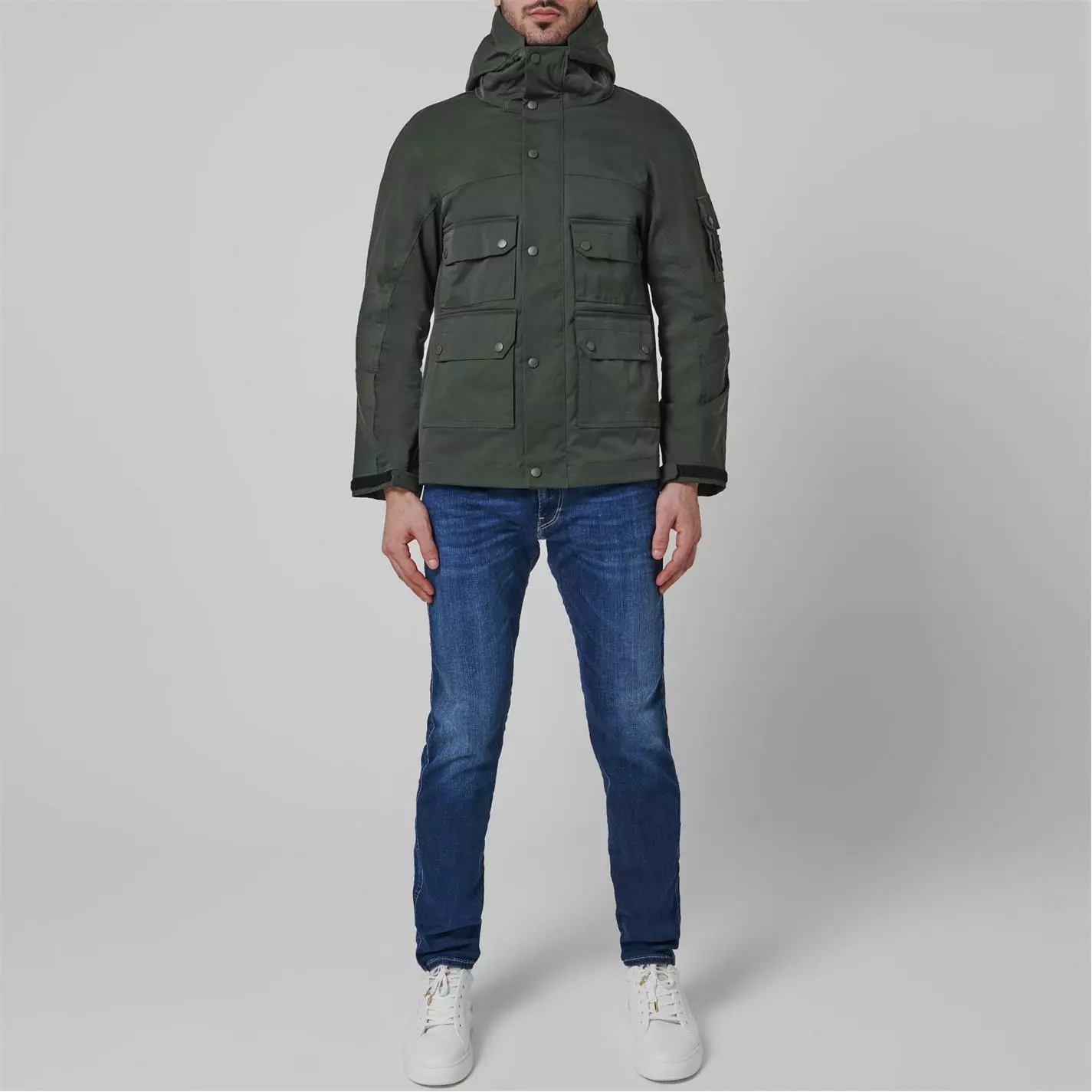 Step up your outwear collection with this 2 in 1 Military Jacket from Replay. Great for versatile wear, the inside layer offers a v neckline with full zip closure, long sleeves, an elasticated trim and a touch and go pouch pocket to the front. This single colour removable insulating layer connects with hooks on the cuff to the exterior layer. This exterior layer features full zip closure with a button storm flap, a drawstring adjustable hood, touch and go cuffs, a multitude of button chest pockets and a sleeve pocket with Replay branding to show you mean business. The exterior offers a water and wind resistant shell with an interior zip to connect both layers and solid colour throughout for steady styling. 100% Cotton. Machine washable.