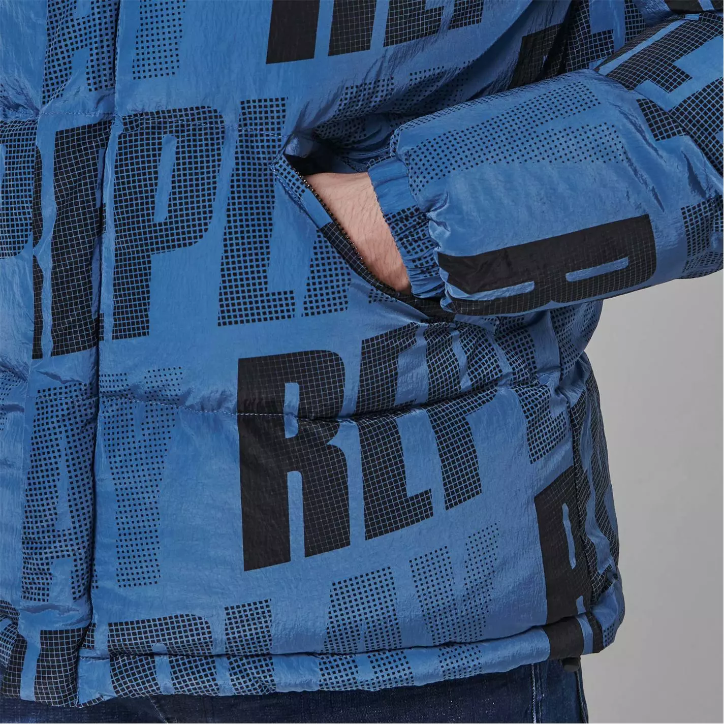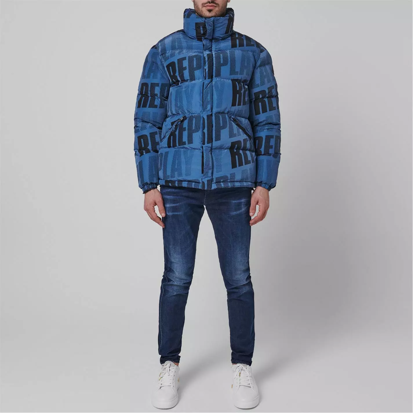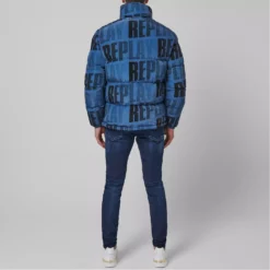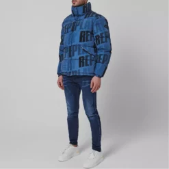 Refresh your outerwear with the Logo Jacket from replay. Made from nylon, this jacket is filled with synthetic padding to keep you warm all season long. Designed with elasticated cuffs to the sleeves and a toggled hem to adjust to your liking, this full zip jacket is characterised by twin hand pockets and two internal zip pockets for your phone and other hand held essentials. With the Replay logo printed throughout for an urban feel, this jacket is finished with the Reply logo patch to the sleeve.
