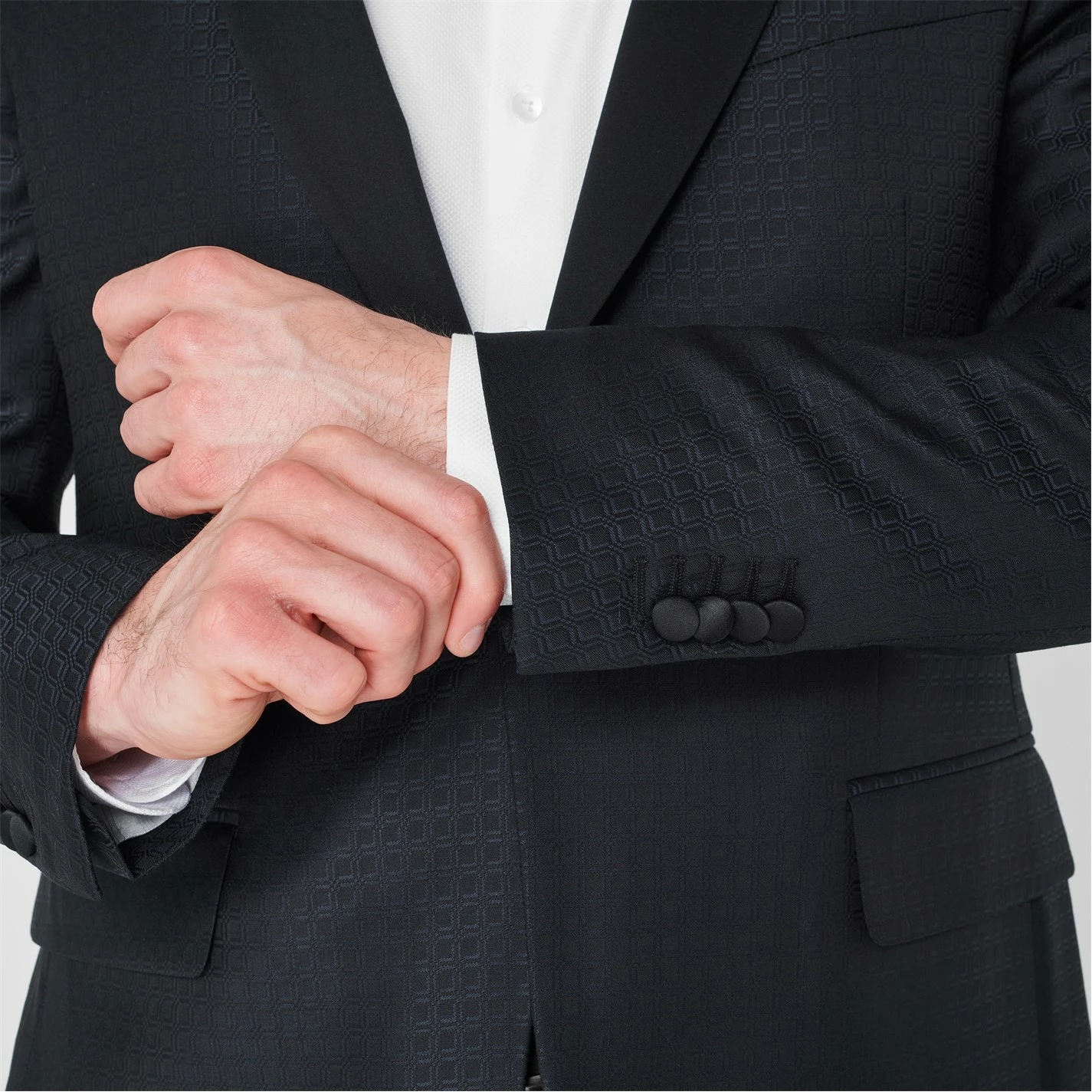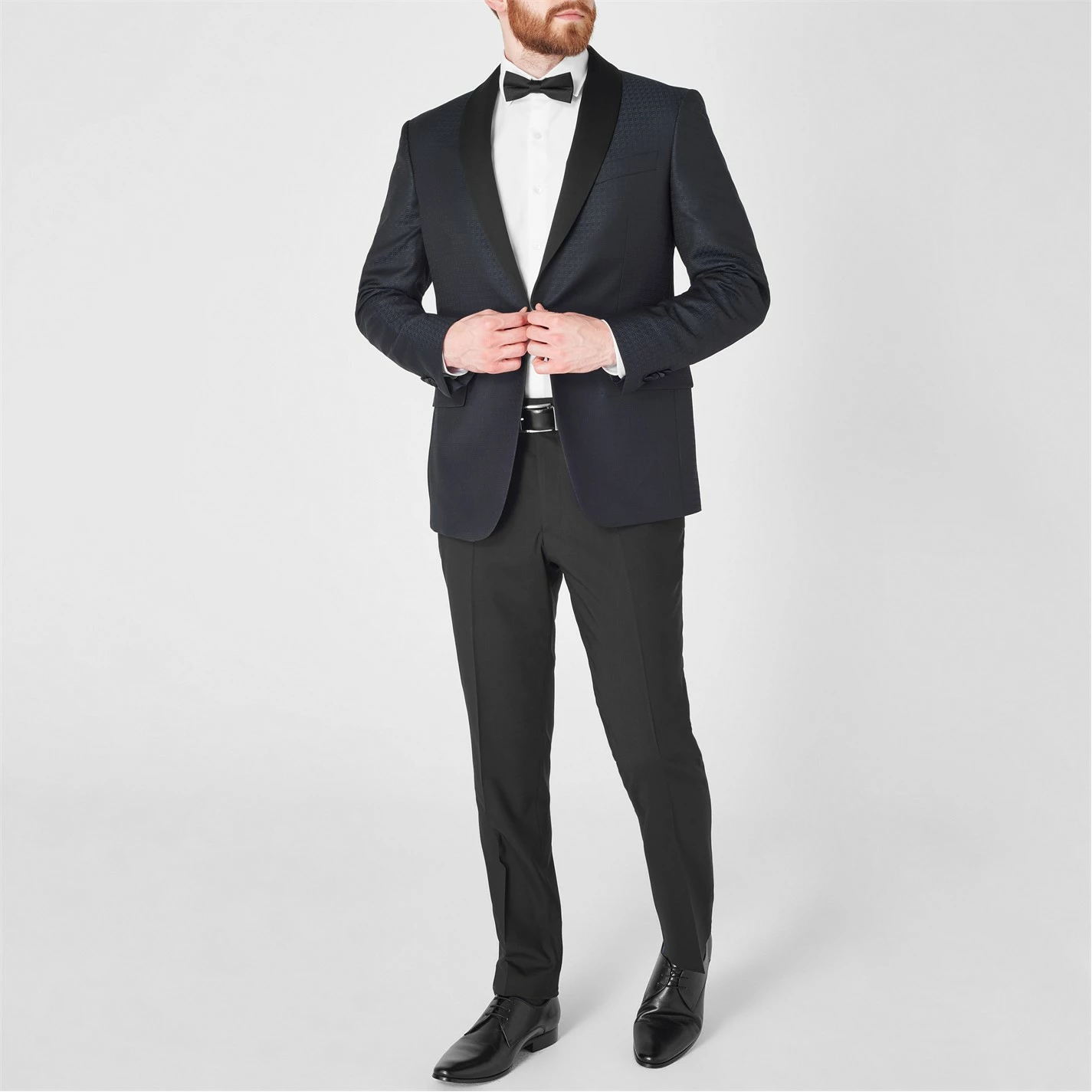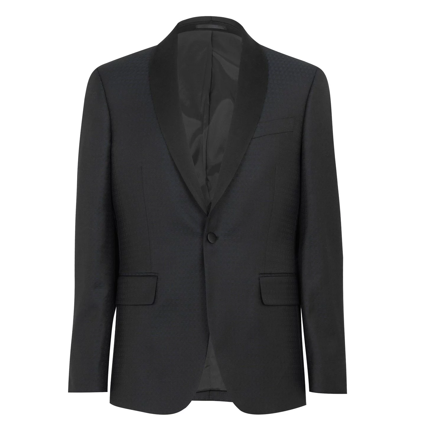 In a timeless silhouette, this single-breasted tuxedo has been crafted from a soft fabrication secured with a classic single-button fastening to the centre. Featuring a shawl collar, double vents and a five pocket styling, this fully lined classic piece is finsihed with button cuffs to the long sleeves. Style yours with a plain shirt, bowtie, tailored trousers and smart shoes for any formal occasion.