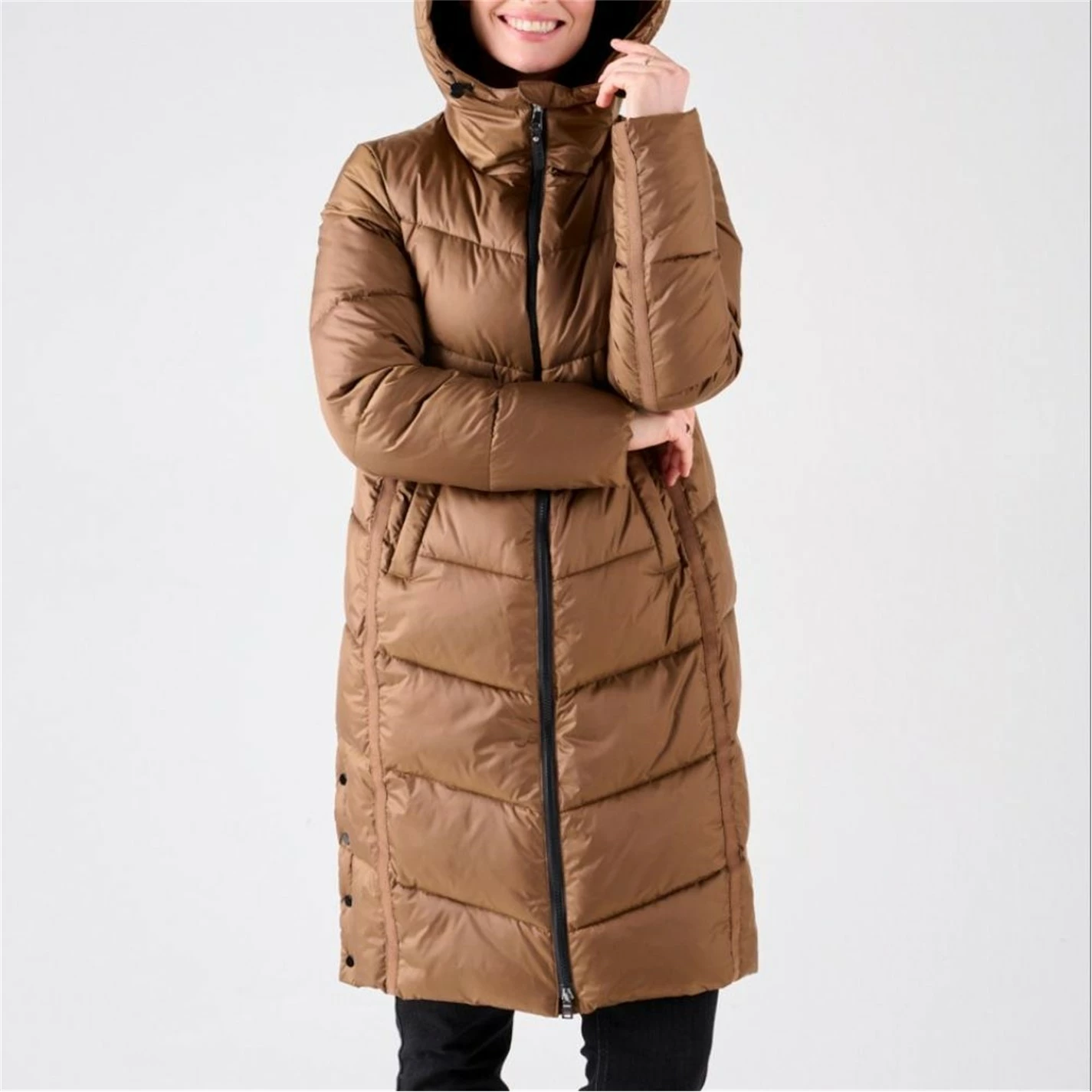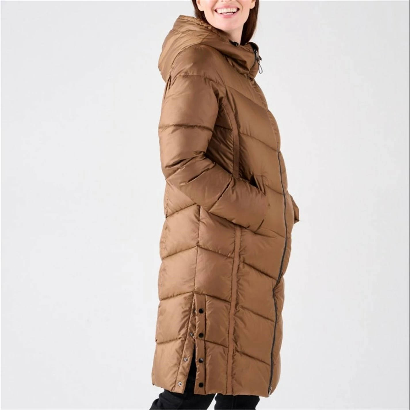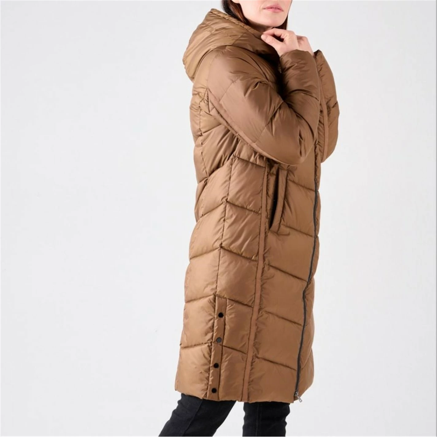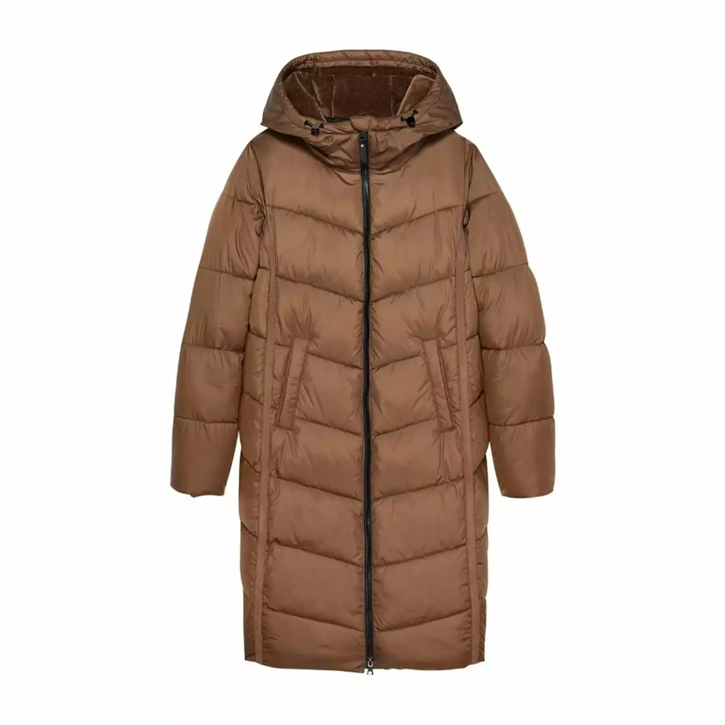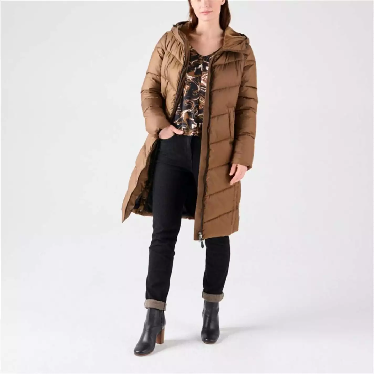This Longline puffer jacket features full zip fastening, two pockets and drawstring hoodie for added warmth.