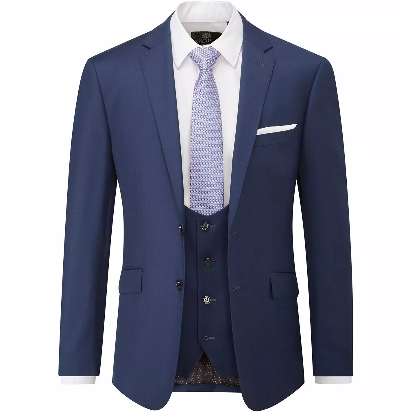 Skopes Contemporary Collection Milan Slim Fit Suit Jacket. Make the sharpest of impressions with this contemporary collection slim fit suit. The fine twill weave lends a lightweight yet enduring finish to this slim fit suit. Features single breasted two button fastening, slant flap pockets, twin side vents with spot lining.