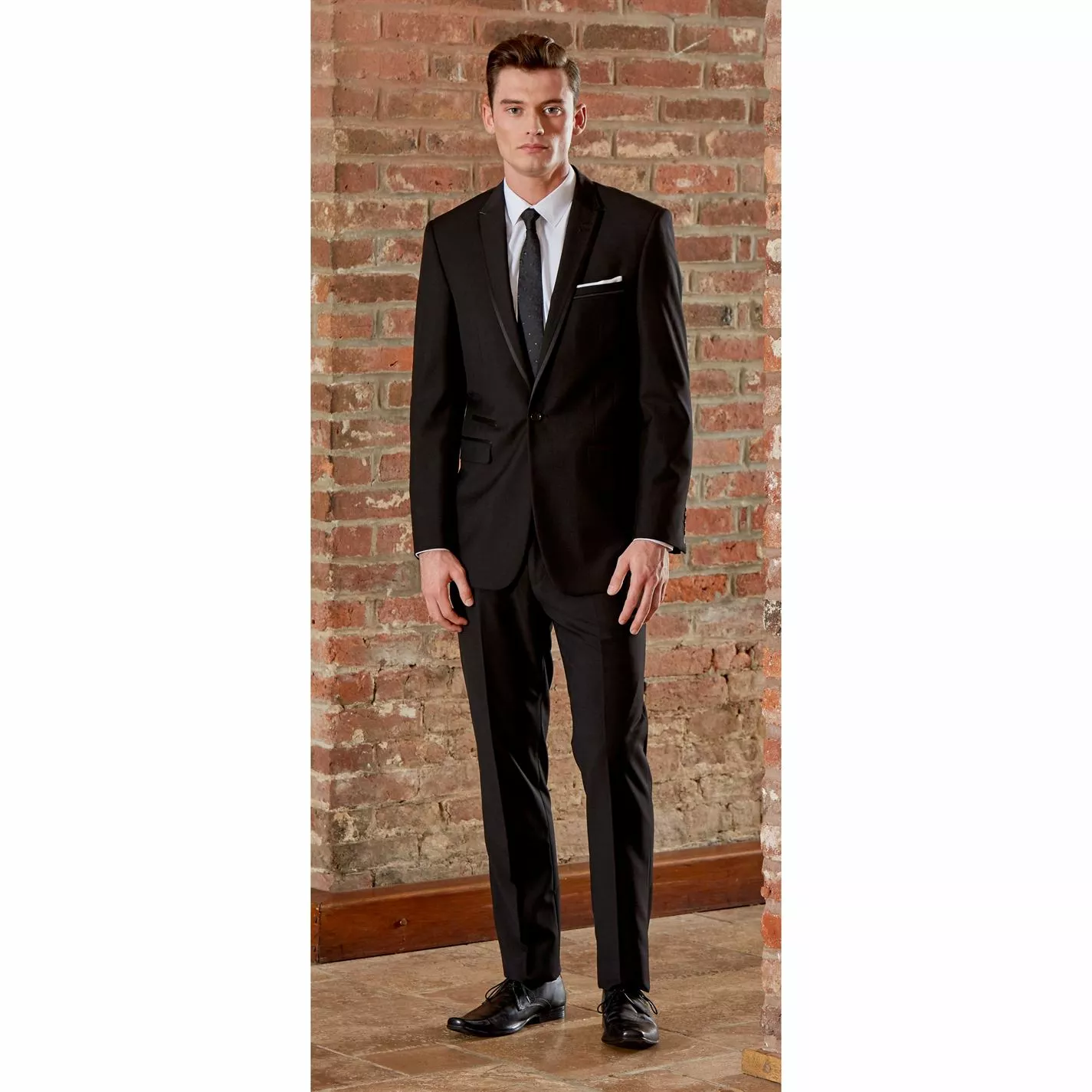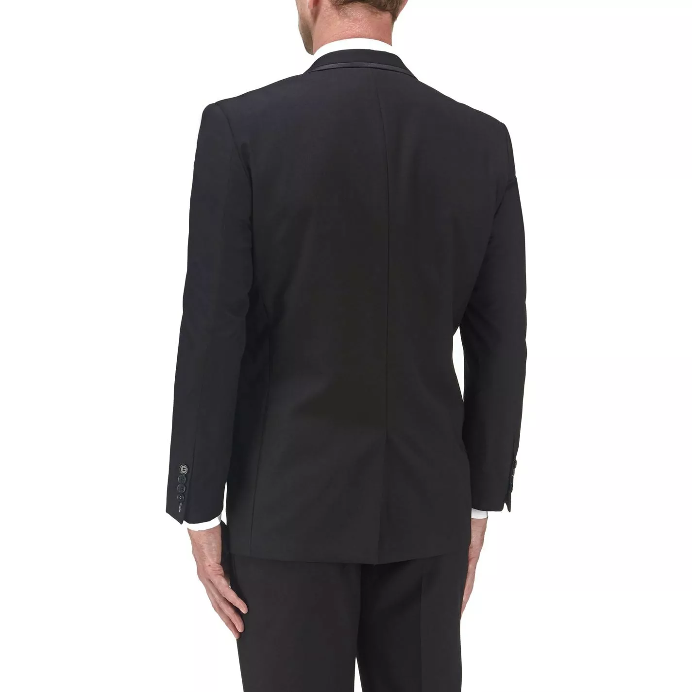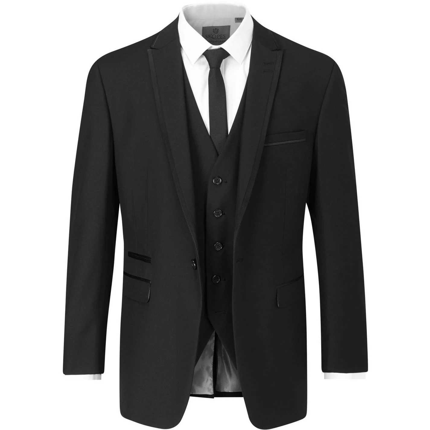 Ronson Tailored Fit Dinner Suit Jacket by Skopes. Made from superfine twill cloth, giving a light weight yet practical and durable feel. Design details include peak lapels, jetted ticket pocket, centre back vent, additional chest darts, contrast colour button hole stitching, Satin trim around pockets and lapels. Available as a two-piece suit with either the matching tailored or slim fit Ronson trousers.
