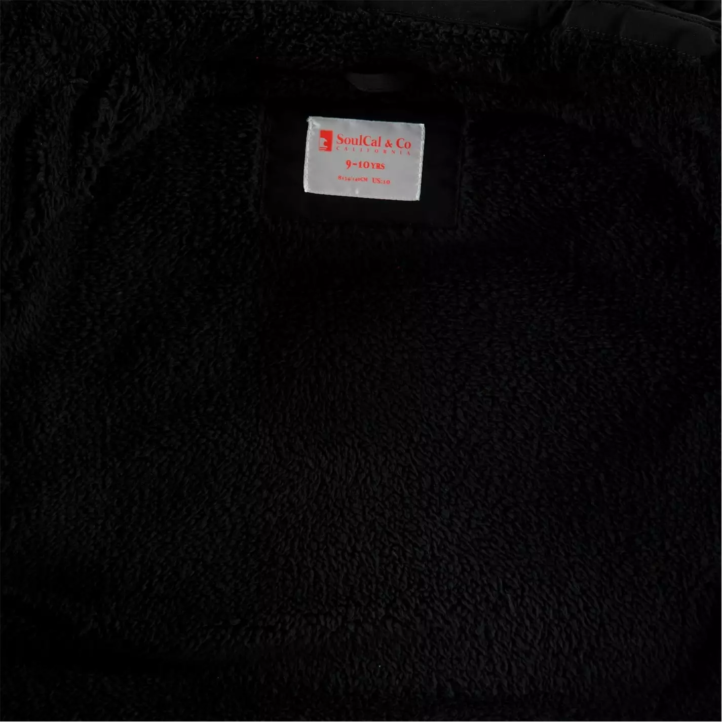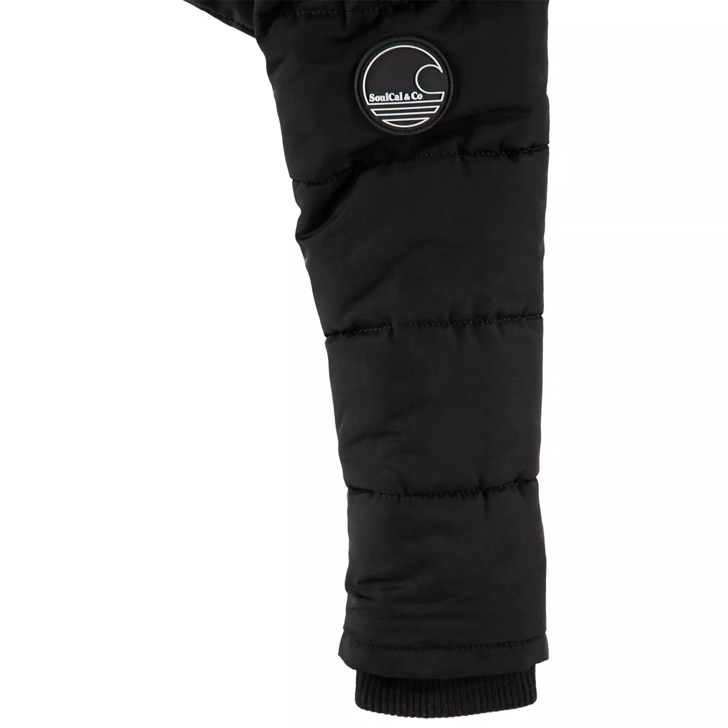 Update your child’s wardrobe with the SoulCal 2 Zip Bubble Jacket. Crafted with double zip fastening and a detachable faux fur hood, this fleece laced garment will keep your child super-toasty. Featuring a rubber badge logo, SoulCal branding, this jacket promises to impress.
