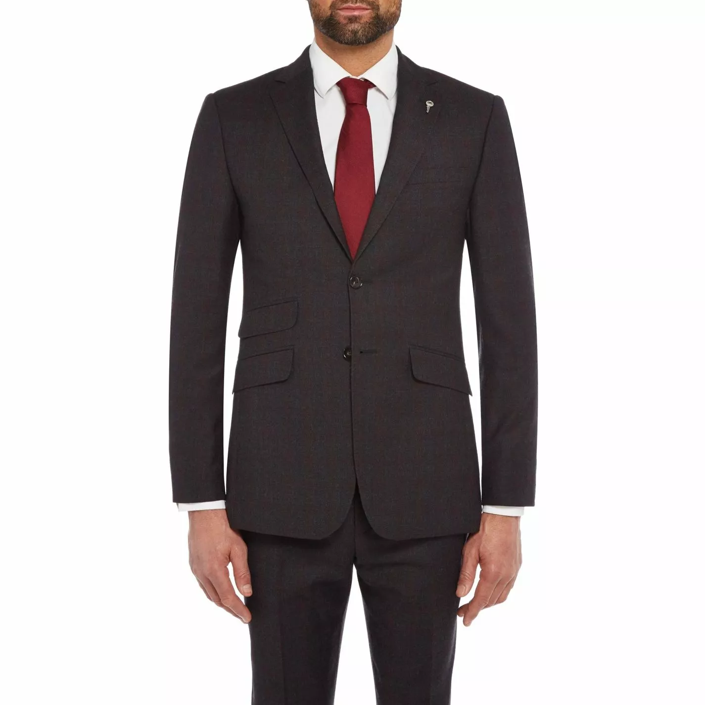 Invigorate your boardroom dressing with this Dahl suit jacket by Ted Baker. Fabricated from pure wool, this single-breasted design features a notch lapel, two-button frontal closure and ticket pockets to lend comfortable wear. Bedecked in checked print design, a chest pocket and four-buttoned cuffs, this suit jacket compliments well with a white shirt, tie and coordinating trousers for a modish outfit.