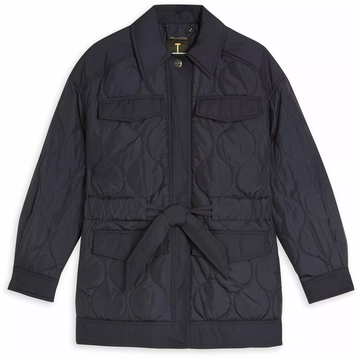 Update your collection with this Ted Baker Leeonie Jacket. Crafted with a folded collar, central zip fastening and a belt for a secure fit, it features long sleeves and four pockets for a classic look. This jacket is a quilted design with a signature logo and is complete with Ted Baker branding.