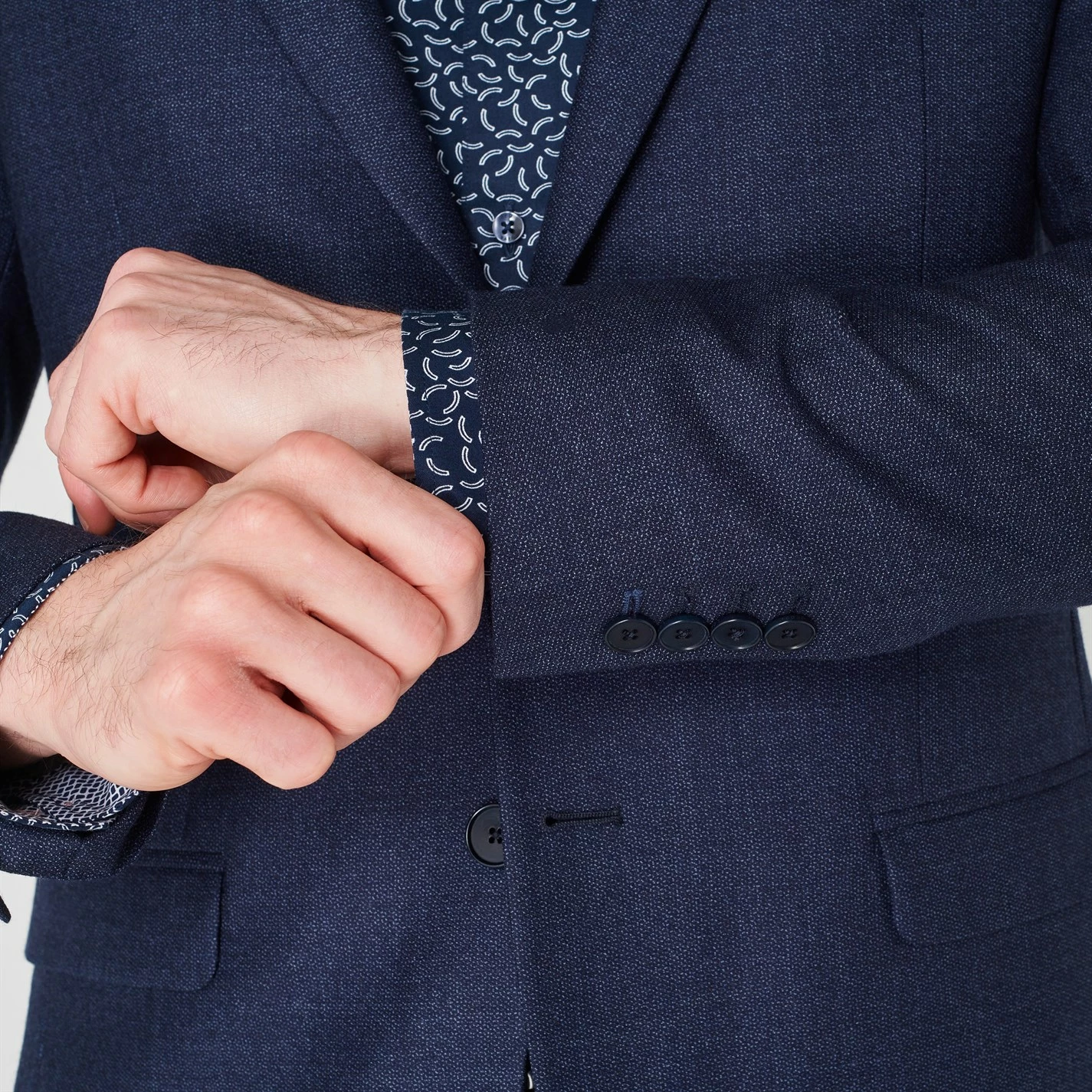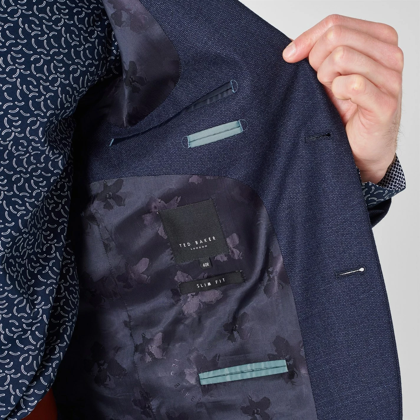 In need of something special for that upcoming occasion, then invest in the Orwell Suit Jacket brought to you by Ted Baker Tailoring. In superbly smart and comfortable 100% wool with half-canvas internals, this jacket offers up a slim fit with a two-button fastening and notch lapel in classic Ted’s navy jaspe structure. This sophisticated number offers an inbuilt pocket square, functional working button cuff and a signature Ted Baker lapel pin for true brand appreciation. Style yours with a classic slim fit shirt and tailored trousers for any formal occasions or a day in the office.